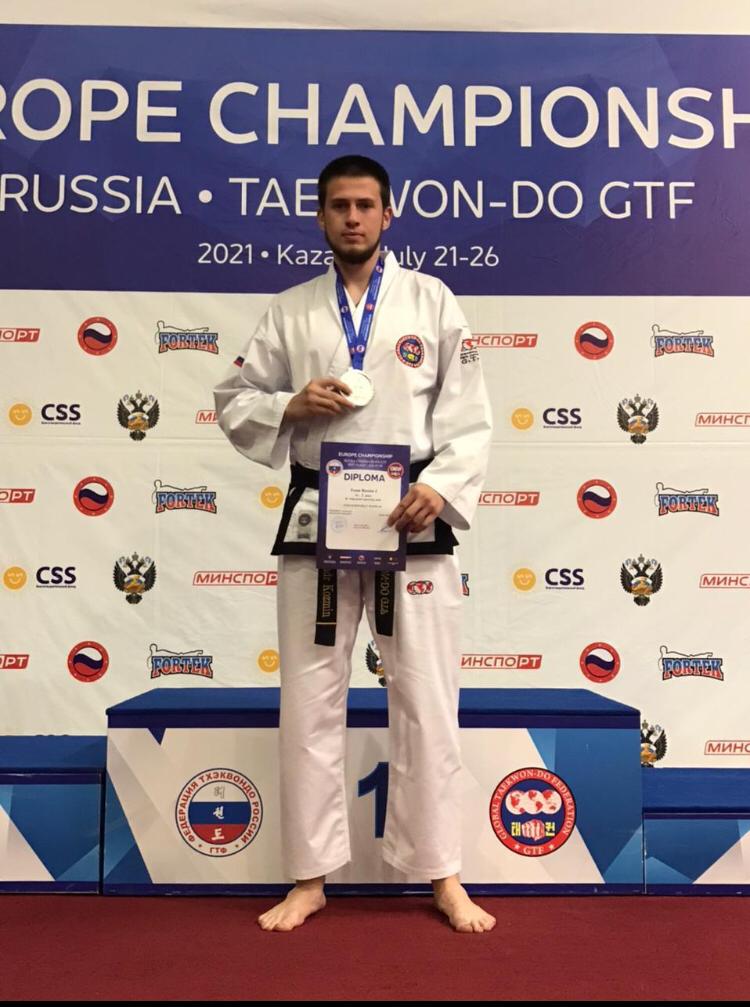 Студент заочного отделения Козьмин А.М. стал серебряным призером Чемпионата Европы по тхэквондо ГТФ. Соревнования проводились в городе Казань.