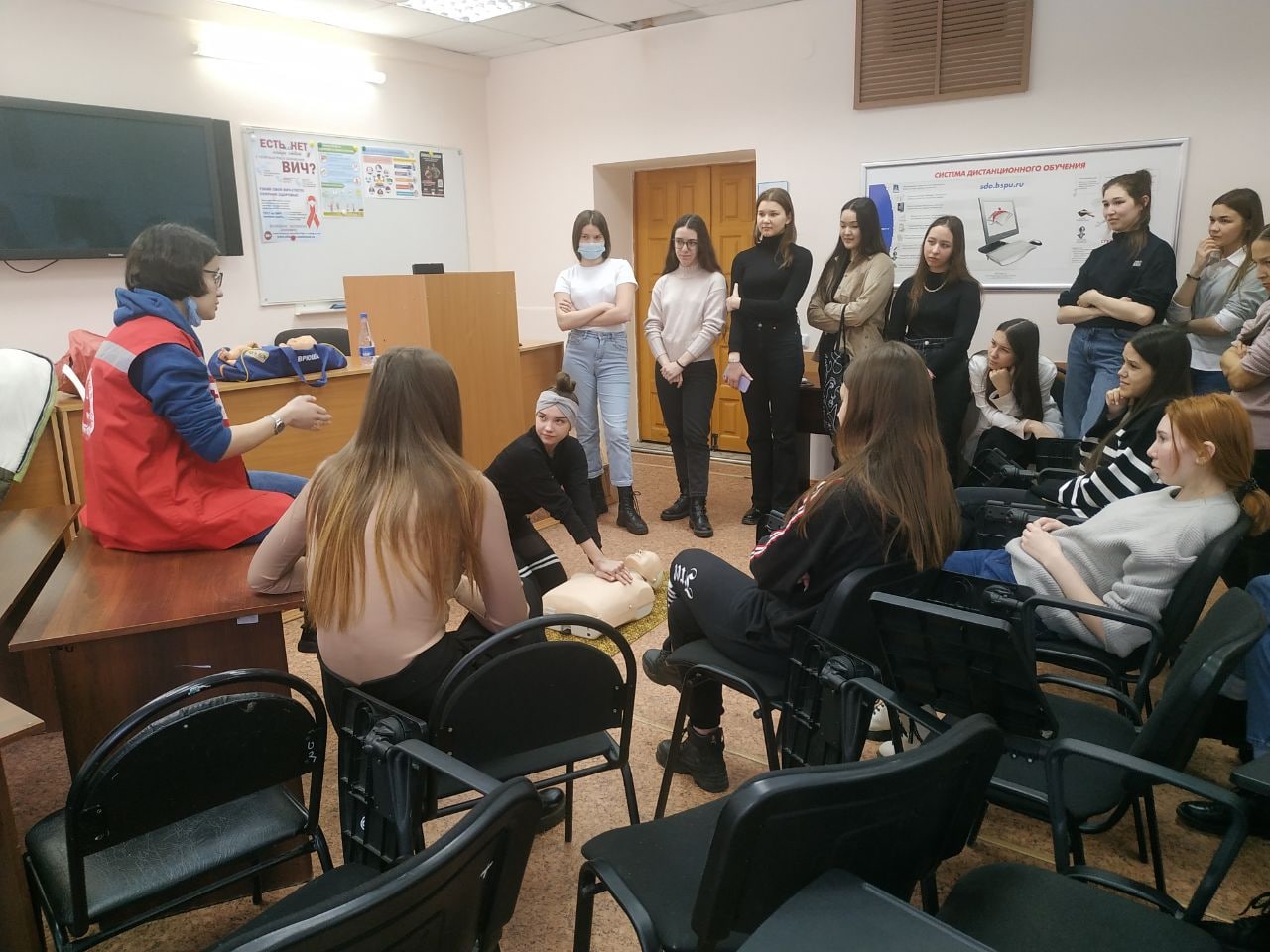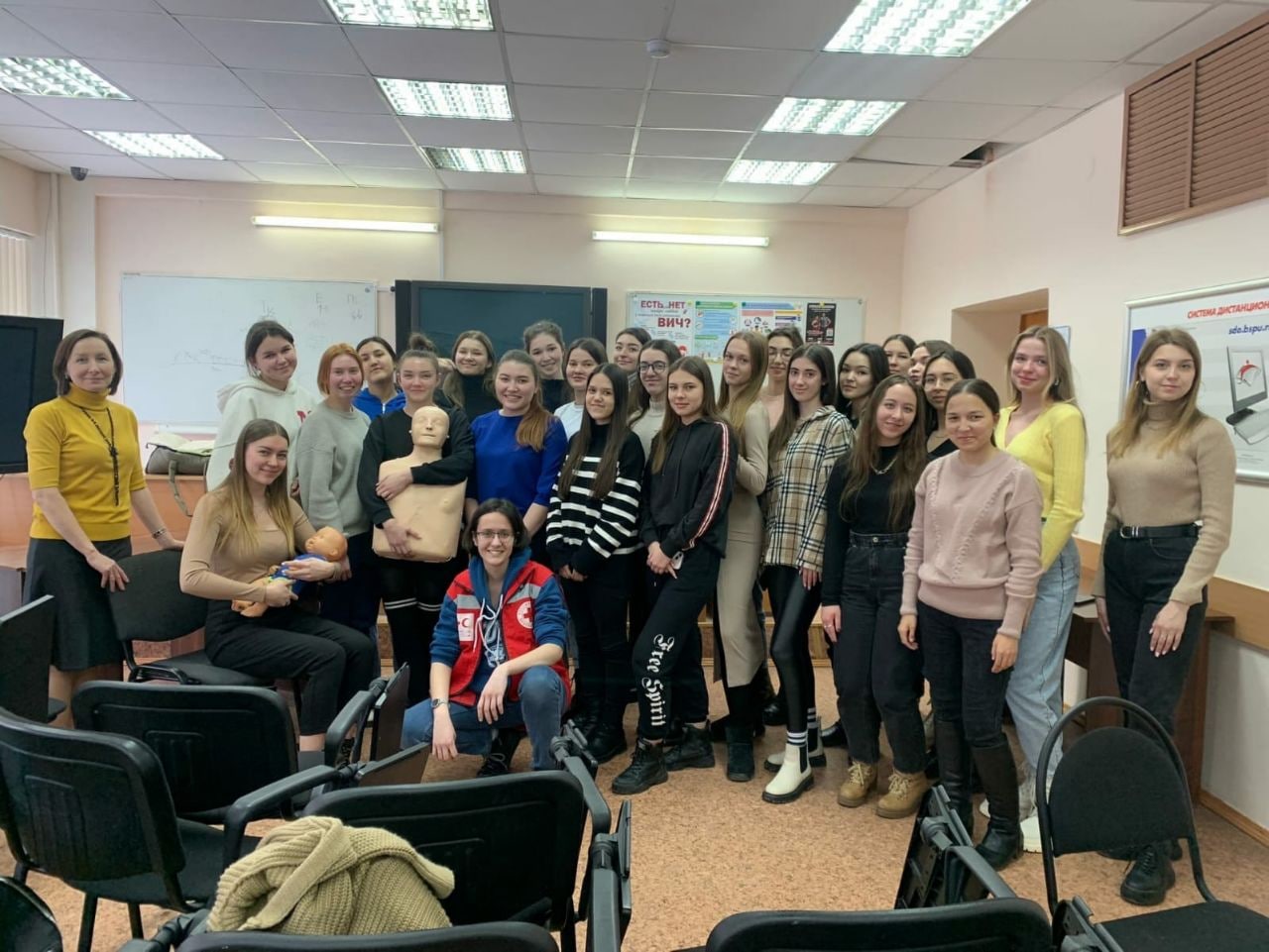 19 марта Щебетовская Д.А. – заместитель председателя Регионального отделения Российского Красного Креста по Республике Башкортостан на базе кафедры Охраны здоровья и безопасности жизнедеятельности провела очередной курс по обучению навыкам оказания первой помощи в рамках проекта – победителя конкурса Фонда президентских грантов «Уроки спасения Красного Креста».