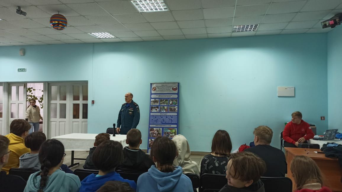 Старший преподаватель Голубков С.А. рассказал участникам смены о важности и необходимости обучению дисциплинам, повышающих культуру безопасности жизнедеятельности. В форме диалога была затронута благородная и нужная в наше время профессия пожарных и спасателей. Голубков С.А. напомнил школьникам о том, что Министерство Российской Федерации по делам гражданской обороны, чрезвычайным ситуациям и ликвидации стихийных бедствий является Федеральным органом исполнительной власти, осуществляющим защиту и подготовку к защите населения на территории России при чрезвычайных ситуациях при военных конфликтах или вследствие их, а также природного и техногенного характера.