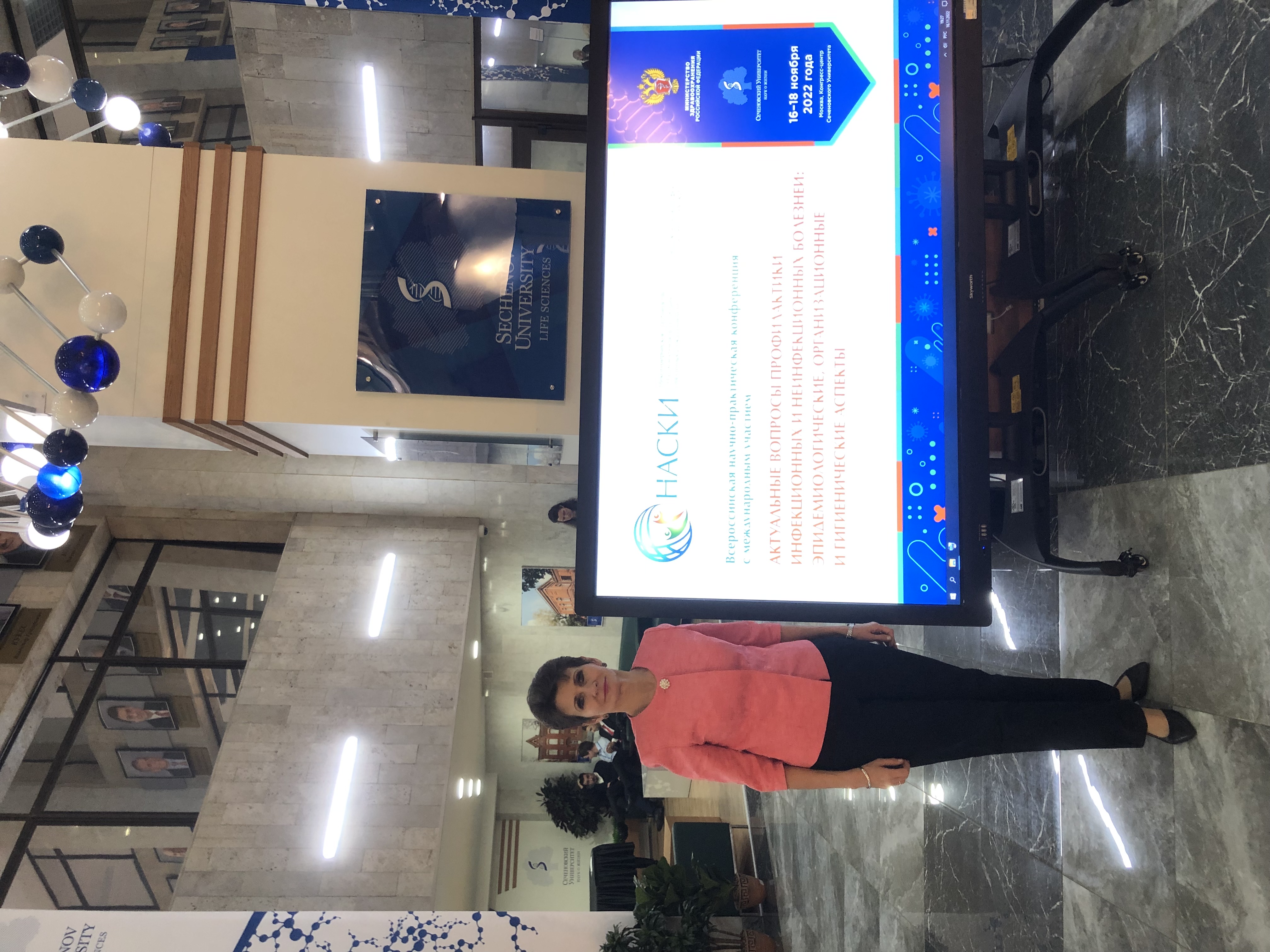 Доцент кафедры охраны здоровья и безопасности жизнедеятельности Горбаткова Елена Юрьевна выступила с докладом на Всероссийской научно-практической конференции с международным участием «Актуальные вопросы профилактики инфекционных и неинфекционных болезней: эпидемиологические, организационные и гигиенические аспекты», которая проводилась 16-18 ноября 2022 года в г. Москве. Организаторами Конференции являлись Министерство здравоохранения Российской Федерации, ФГАОУ ВО Первый МГМУ им. И.М. Сеченова Минздрава России (Сеченовский Университет), Национальная ассоциация специалистов по контролю инфекций, связанных с оказанием медицинской помощи (НАСКИ). Программа конференции охватывала различные аспекты общественного здоровья, эпидемиологии, гигиены, микробиологии в области профилактики инфекционных и неинфекционных болезней.