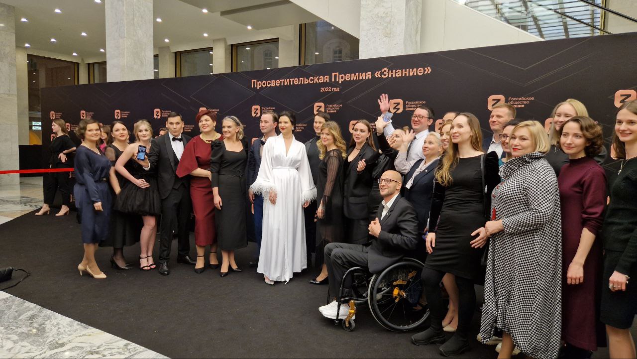 В Государственном Кремлёвском дворце подвели итоги премии «Знание — 2022». Престижной наградой отметили лекторов, школьных учителей, СМИ и другие организации, которые занимаются просветительской деятельностью в разных сферах. В видеообращении по случаю 75-летия общества «Знание» президент России Владимир Путин заявил: «Рассчитываю, что вклад общества «Знание» в развитие России по всем направлениям будет только расти».