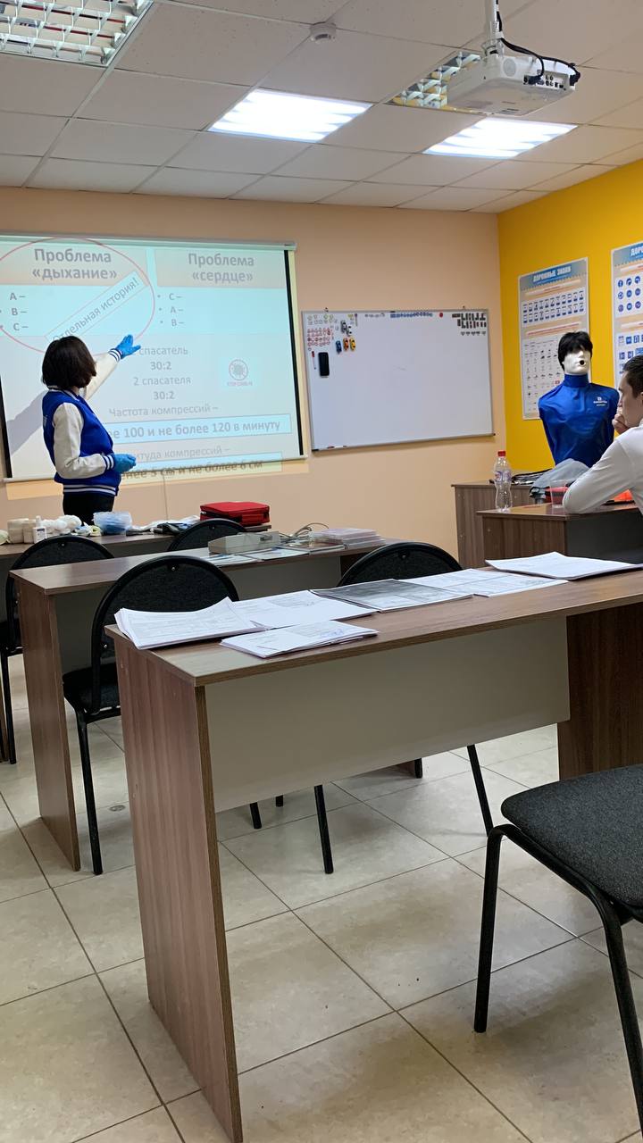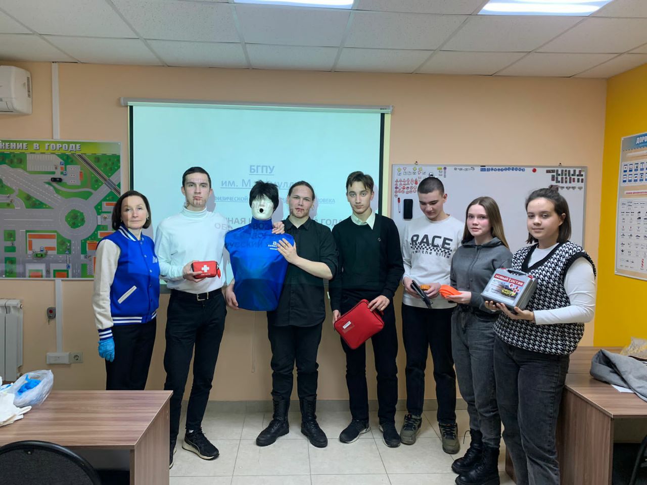 Доцент кафедры ОЗиБЖ Мануйлова Г.Р. учила присутствующих определять наличие сознания и дыхания на манекенах-симуляторах у условно пострадавшего, рассказала и показала полный алгоритм действий при сердечно-легочной реанимации, а также продемонстрировала приём Геймлиха, который используется для освобождения верхних дыхательных путей при попадании инородных предметов. Ребята активно участвовали в отработке практических навыков.