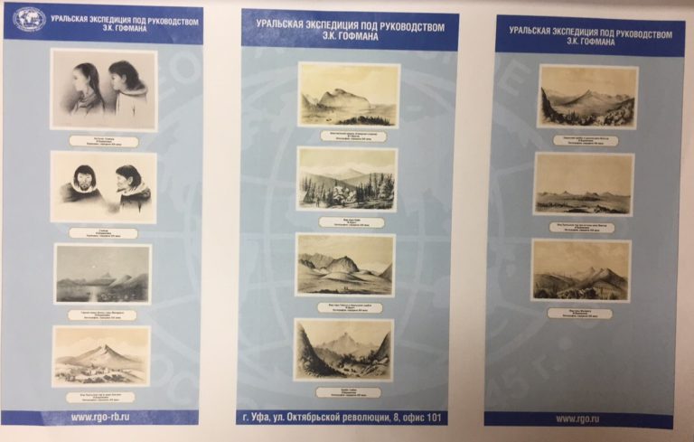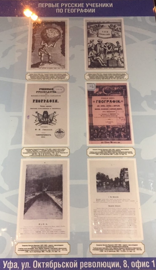 В уфимскую экспозицию вошли копии редких архивных документов, карты, карандашные наброски и фотоснимки, сделанные во время экспедиций выдающихся путешественников и ученых Э.Гофмана и Н.Вавилова, выполненных по заданию Русского географического общества, а также оцифрованные страницы первых русских учебников по географии.