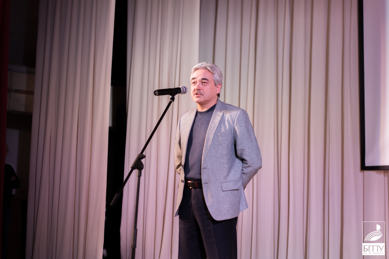 Началось мероприятие в концертном зале вуза, где гостей приветствовал первый проректор Алмаз Флюрович Мустаев: