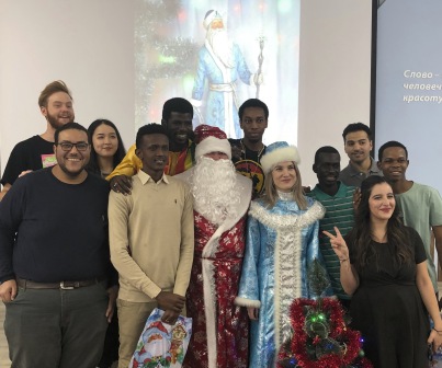 Представители Алжира, Анголы, Египта, Йемена, Китая, Колумбии, Марокко, Нигерии, Сенегала, Сомали, Турции, Узбекистана, Туркменистана, Эквадора, ЮАР, изучающие русский язык в нашем университете, праздновали Новый год согласно российской традиции. Слушатели водили хороводы вокруг елки, пели новогоднюю песню «В лесу родилась ёлочка», отгадывали загадки. Дед Мороз дарил подарки за исполнение музыкальных номеров.