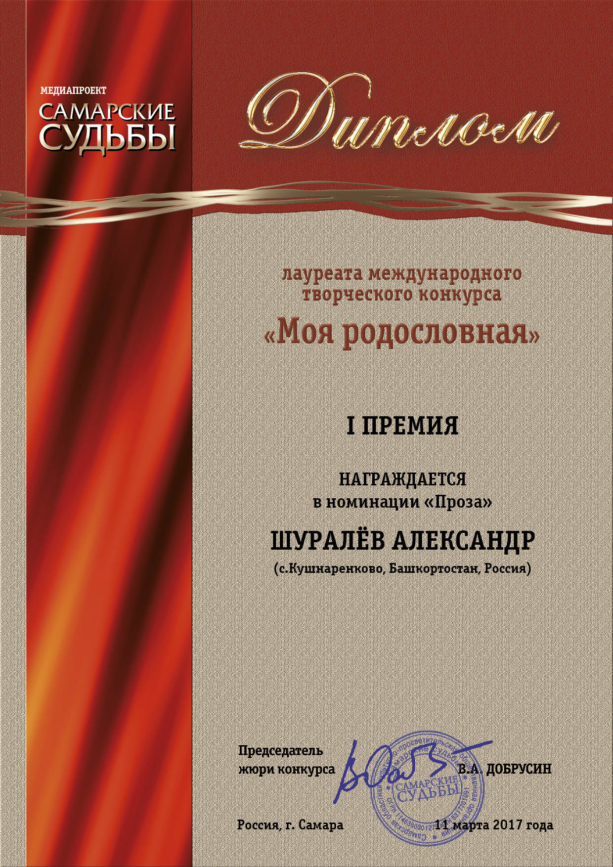 В марте 2017 года профессор кафедры русской литературы, член Союза пи-сателей РФ и РБ Александр Михайлович Шуралёв стал победителем меж-дународного творческого конкурса «Моя родословная», проведённого ме-диа-порталом «Самарские судьбы». В конкурсе приняли участие 248 авторов из России, а также Австралии, Белоруссии, Дании, Казахстана, Украины.