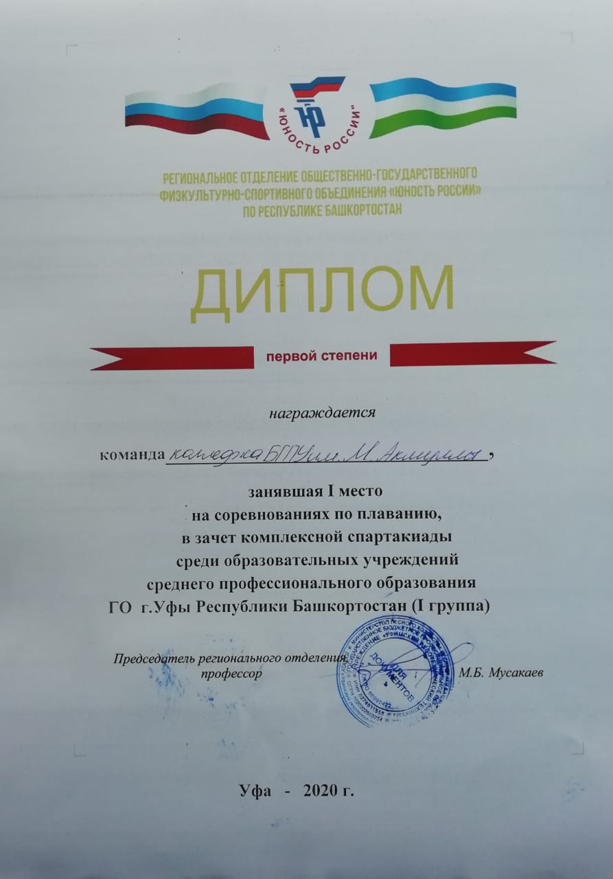 Команда Колледжа БГПУ им.М.Акмуллы заняла первое место на соревнованиях по плаванию среди студентов УСПО г.Уфа