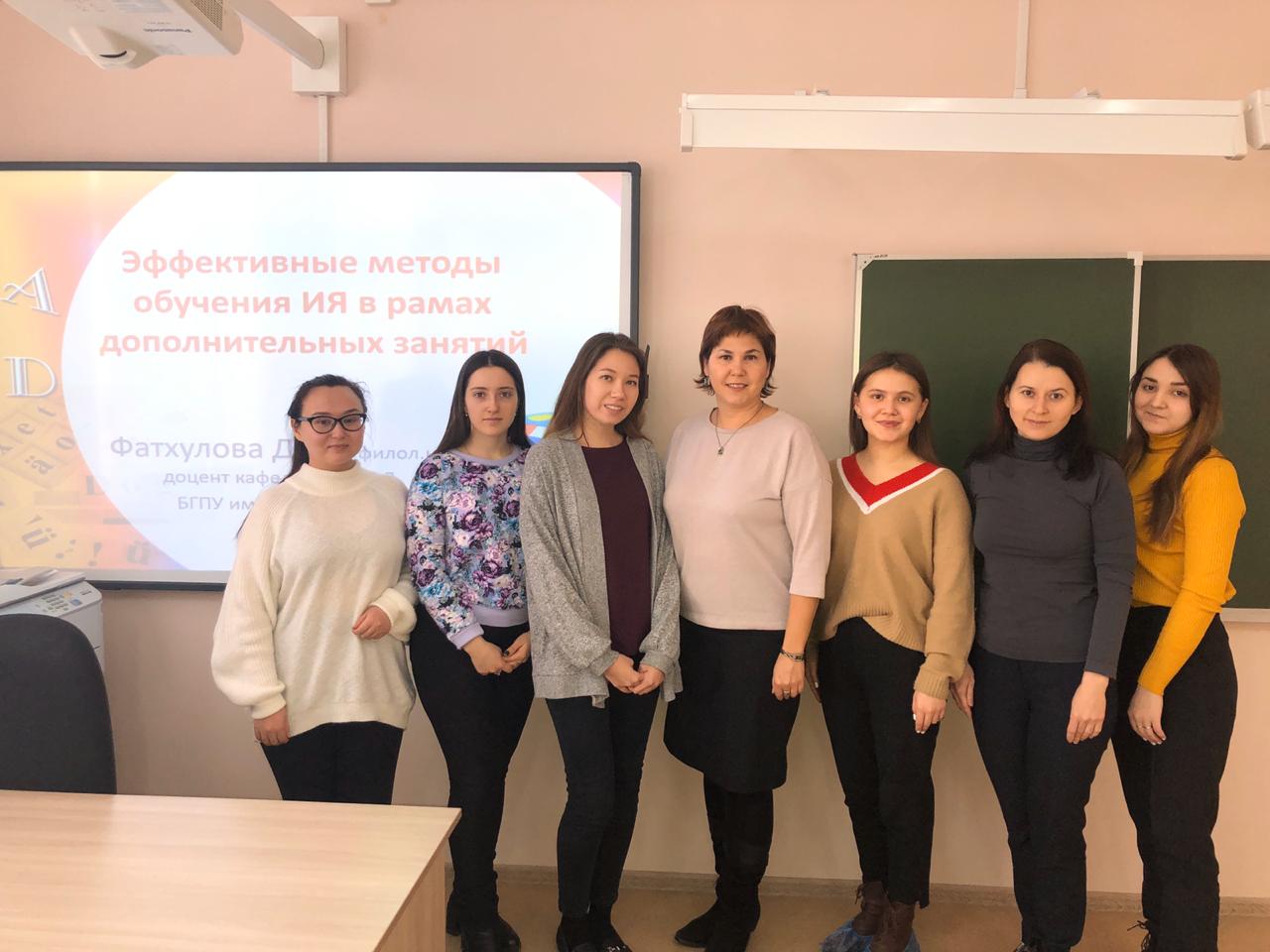 12 февраля 2020 года в МБОУ «Лицей № 160» ГО г. Уфа прошел методический семинар «Эффективные методы обучения ИЯ в рамках дополнительных занятий», организованный и проведенный доцентом кафедры романо-германского языкознания и зарубежной литературы БГПУ им. М. Акмуллы Фатхуловой Д.Р. в контексте научно-методического сотрудничества лицея с кафедрой.