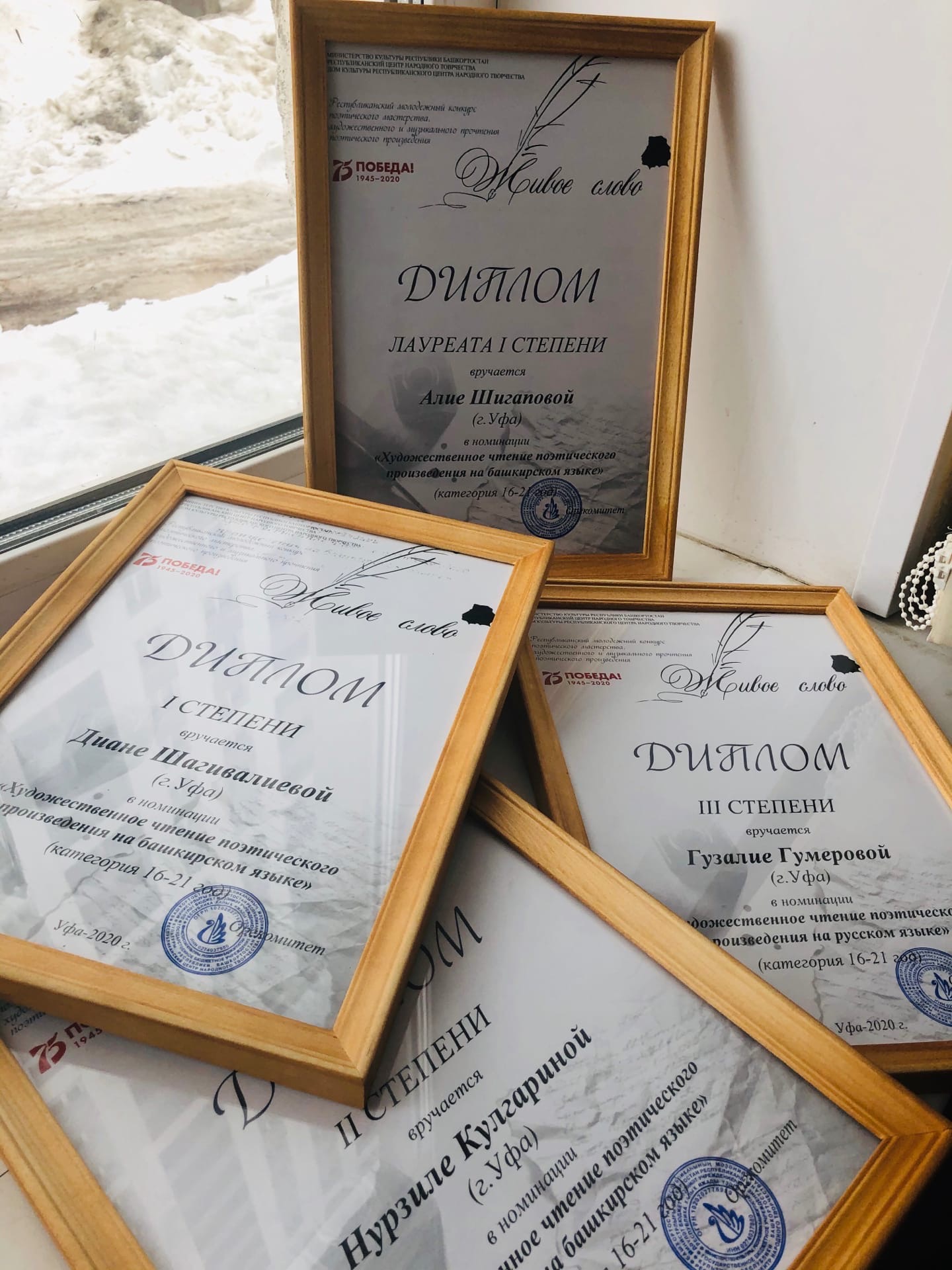 По результатам конкурса в номинации «Художественное чтение поэтического произведения на русском языке» (возрастная категория 16-21) дипломантом III степени стала студентка 3-го курса Гузалия Гумерова, в номинации «Художественное чтение поэтического произведения на башкирском языке» (возрастная категория 16-21) дипломантами l степени признаны студентка 1-го курса Диана Шагивалиева и II степени студентка 3-го курса Нурзиля Кулгарина.