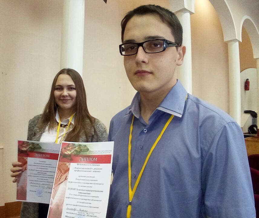 Победителями  по итогам 1 этапа – отборочного, который ежегодно проходит в Колледже БГПУ им. М.Акмуллы по специальности 21.02.05 Земельно- имущественные отношения стали студент гр.ЗИО-23 Гимаев Рафик и студентка гр.9ЗИО-21 Аноскина Анастасия, которые достойно продолжили борьбу на 2 этапе - Региональном.