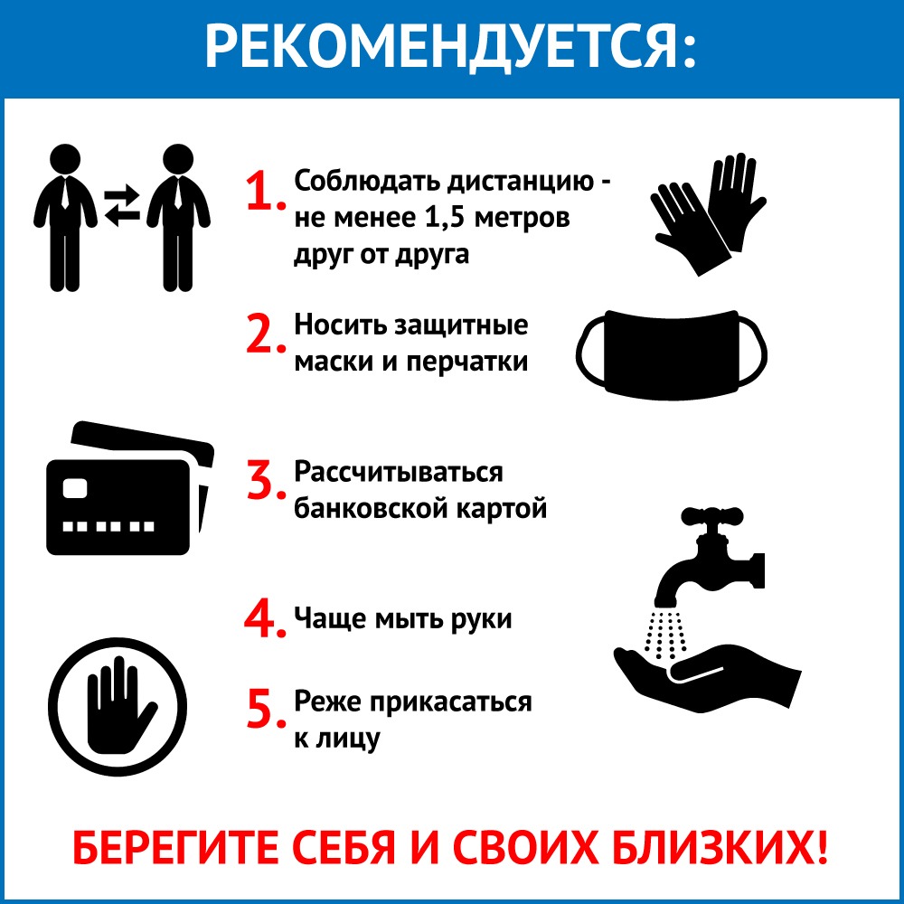 Кроме того, во всех общественных местах — магазинах, аптеках, транспорте, за исключением такси необходимо в обязательном порядке обязательно соблюдать дистанцию — не менее 1,5 метра друг от друга.