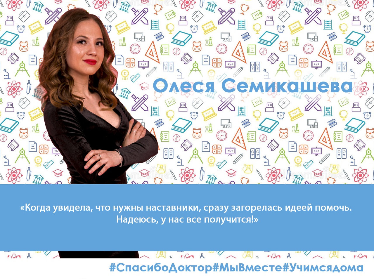 «Я хочу доказать, что математика – это интересно и несложно! И я очень рада, что могу помочь семье Врача!» – делится своими впечатлениями один из первых добровольцев проекта, студент института физики, математики, цифровых и нанотехнологий Акмуллинского университета Элина Галяува.