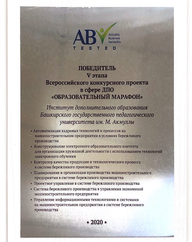 Институт дополнительного образования БГПУ им. М. Акмуллы стал победителем V этапа Всероссийского конкурсного проекта в сфере дополнительного профессионального образования «Образовательный марафон-2020».