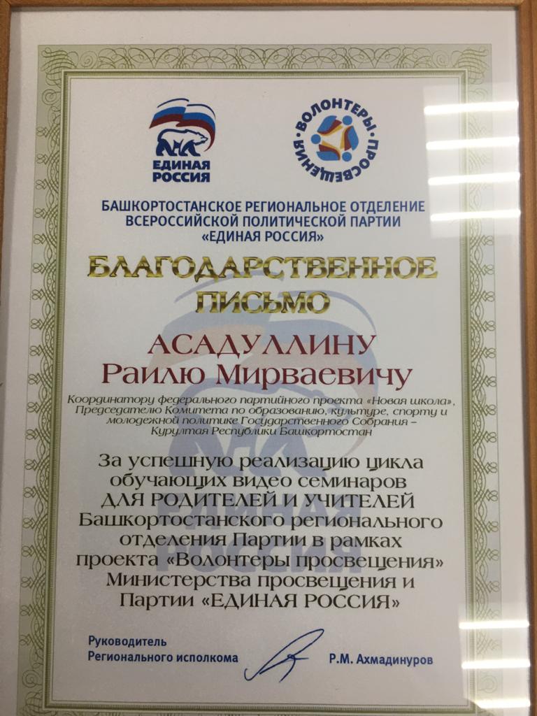 Обучение проходило в рамках проекта "Новая школа", организованного региональным отделением "Единой России". Модератором лектория стал научный руководитель НИИ СРО Р.М.Асадуллин.