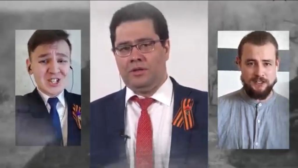Участники хора БГПУ им. М. Акмуллы «Кантанте» записали исполнение знаменитой песни «День Победы» на русском и башкирском языках, которое потом было сведено в единый хор. Участие в творческом номере принял и ректор Акмуллинского университета Салават Сагитов.