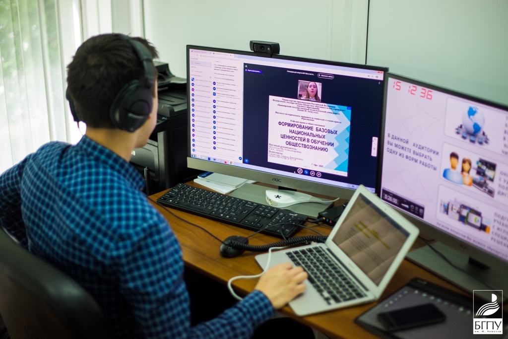 Защита ВКР проходила в формате видеоконференцсвязи, за модерацию которой отвечают секретари государственных экзаменационных комиссий. Для их эффективной работы университет организовал рабочие места в Центре развития компетенций, созданном еще шесть лет назад для обучения студентов работе с  дистанционными образовательными технологиями, а также для записи поточных видеолекций.