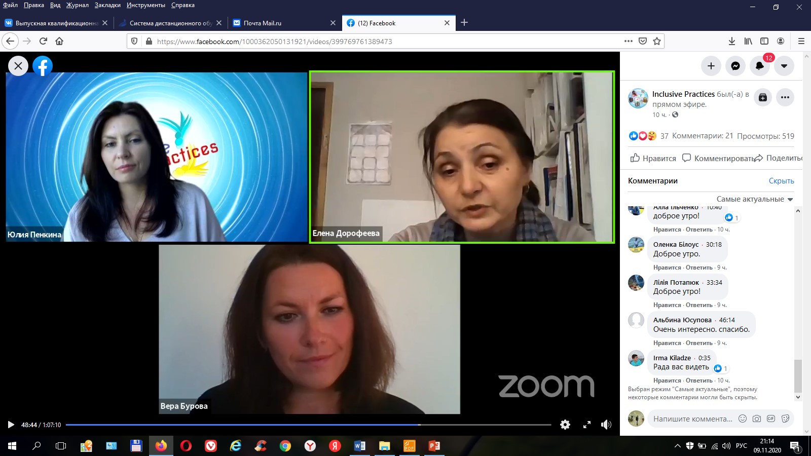 Доцент кафедры дизайна Дорофеева Е. Н. приняла участие в международном онлайн марафоне «Инклюзивное сообщество: здесь и сейчас»