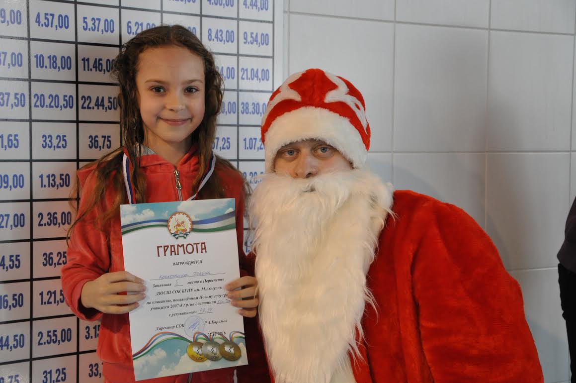 Каждый участник получил из рук Деда Мороза сладкий приз и значок «Умею плавать 25 (50) метров!», а сильнейшие получали медали разного достоинства и грамоты с логотипом Университета. Праздник удался, участники и зрители остались довольны.