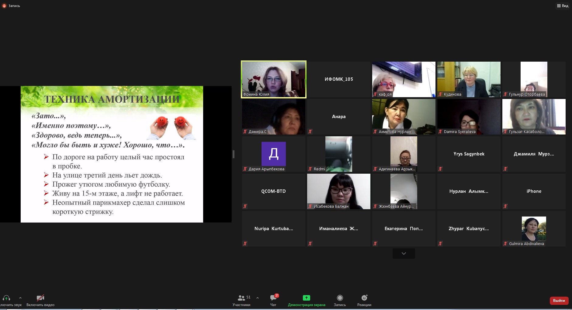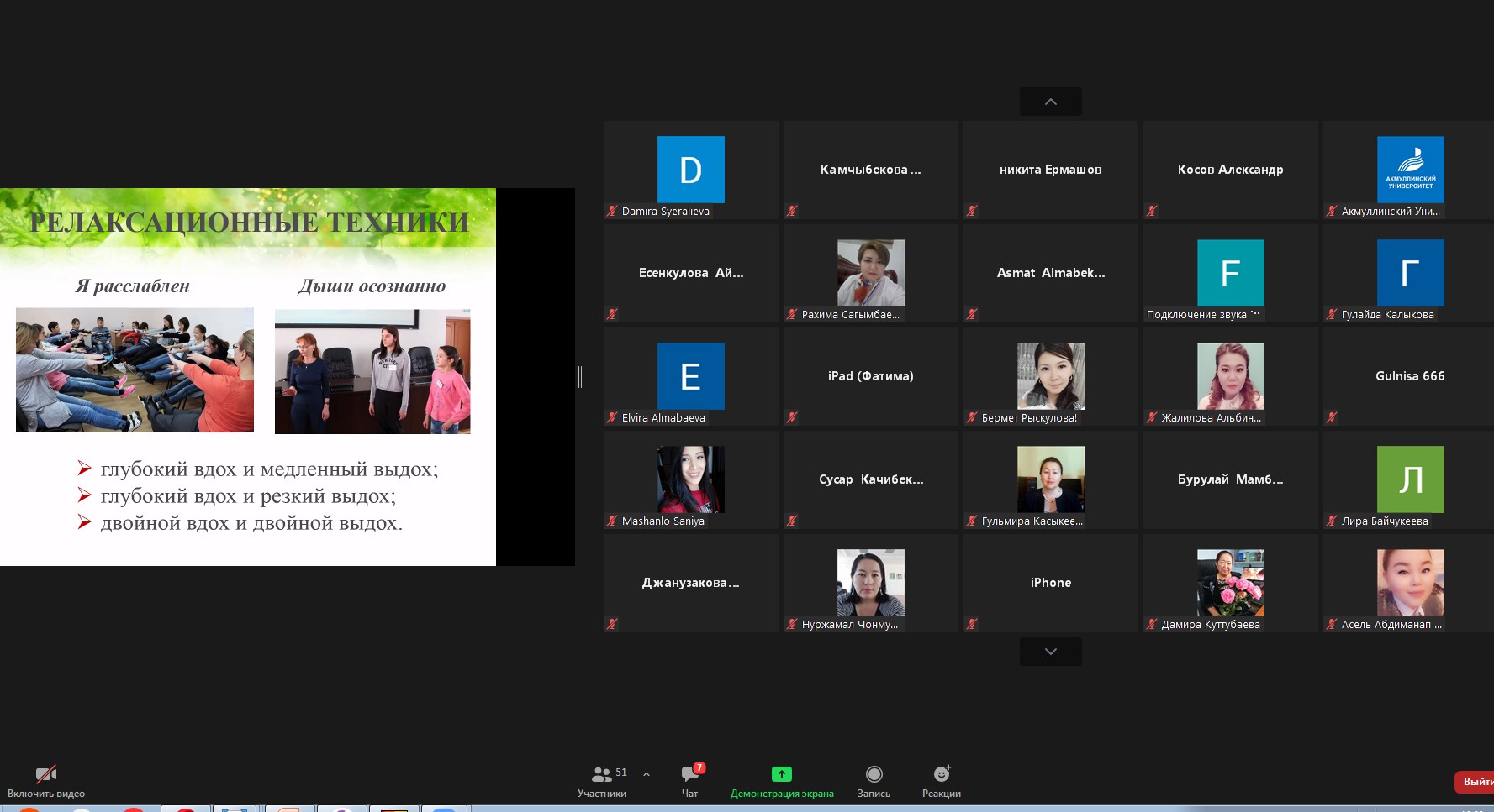 Как преодолеть страх публичного выступления, установить контакт со слушателями, какие контактоустанавливающие упражнения использовать во время лекции - эти и другие вопросы рассматривали коммуникативные тренеры, доценты кафедры общего языкознания БГПУ им. М. Акмуллы Гузель Мансуровна Курбангалеева и Юлия Сергеевна Фомина на прошедшем онлайн-тренинге интерактивной школы ораторского мастерства «Как слово наше отзовётся...» на площадке Zoom. Слушателями и участниками выступили студенты, преподаватели, учителя Башкортостана и Кыргызстана. Эта онлайн-встреча прошла в рамках выполнения Соглашения между Министерством просвещения Российской Федерации и ФГБОУ ВО БГПУ им. М.Акмуллы.