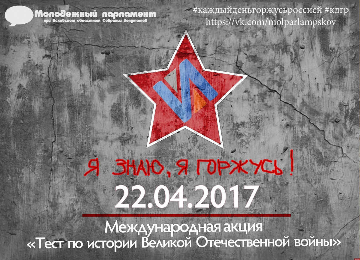 Международная акция «Тест по истории Великой Отечественной войны» проводится Молодежным парламентом при Государственной Думе в рамках проекта «Каждый день горжусь Россией!» уже во второй раз. Организатором в Республике Башкортостан выступает Молодежная общественная палата при Государственном Собрании – Курултае Республики Башкортостан.
