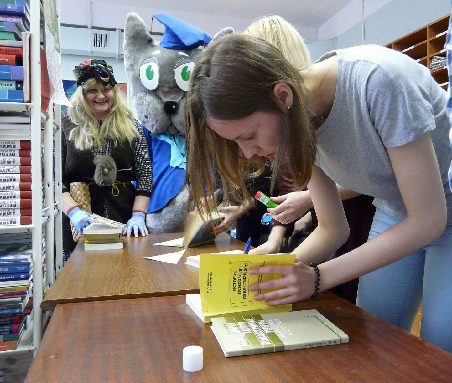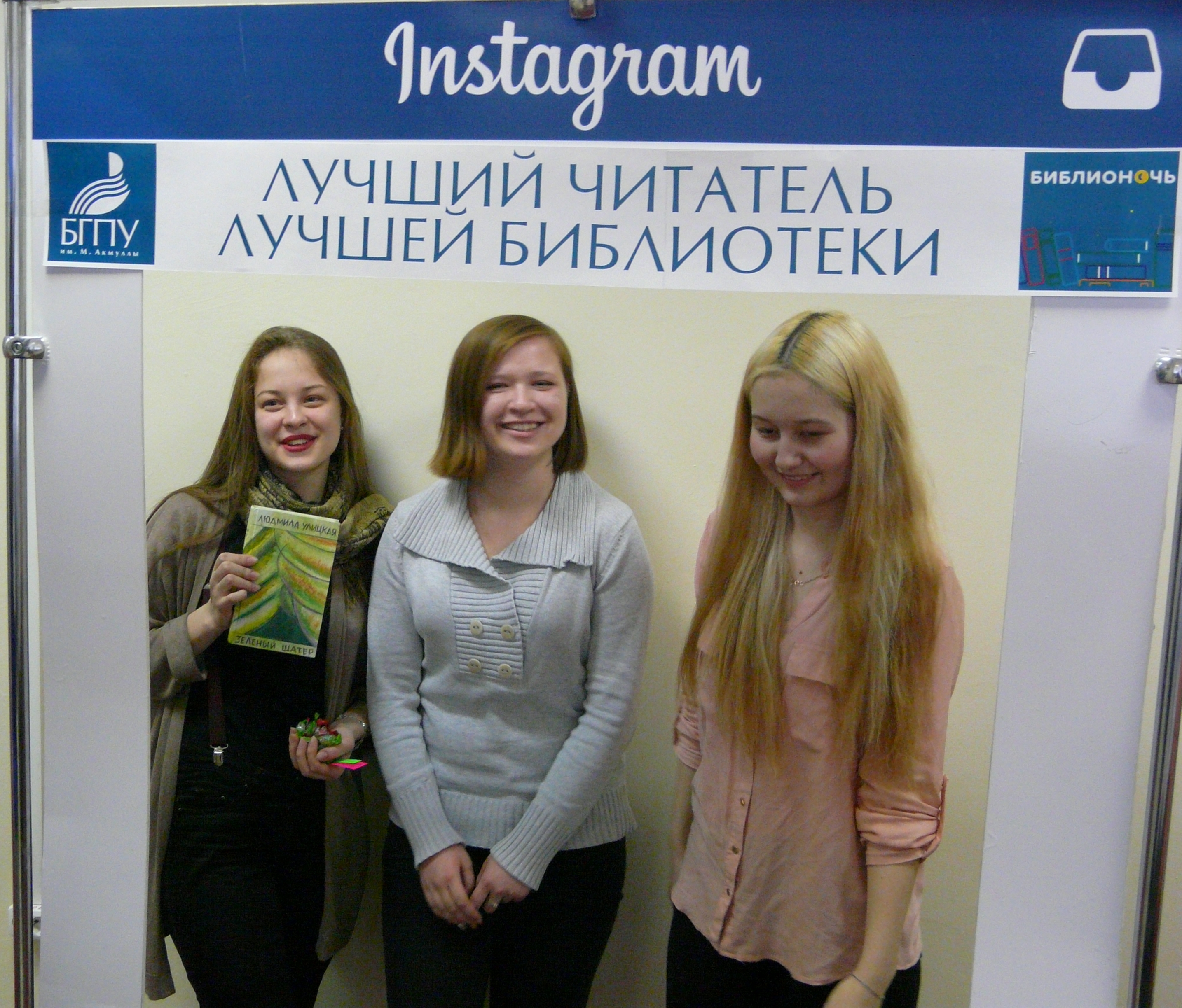 В рамках проведения всероссийской акции «Библионочь-2017» сотрудники библиотеки подготовили книжные выставки: «Книги-юбиляры» и «Возьми меня с собой». Из студентов ЕГФ и ФМФ были сформированы две команды: участников квеста и болельщиков. Пока команда участников квеста проходила 8 этапов маршрута, болельщики выполняли задания ведущих. Профессор Котофф сопровождал ребят и объявлял болельщикам результаты прохождения маршрута.