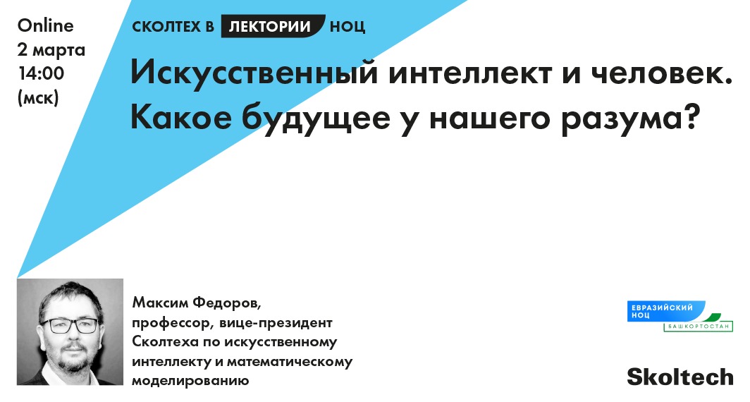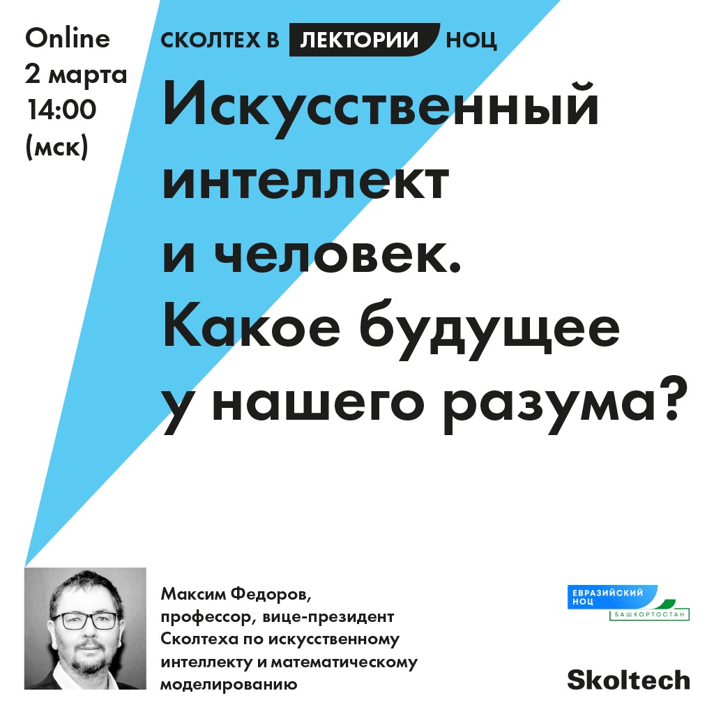Первая онлайн-лекция на тему «Искусственный интеллект и человек. Какое будущее у нашего разума?» состоится 2 марта в 14:00 (по мск).