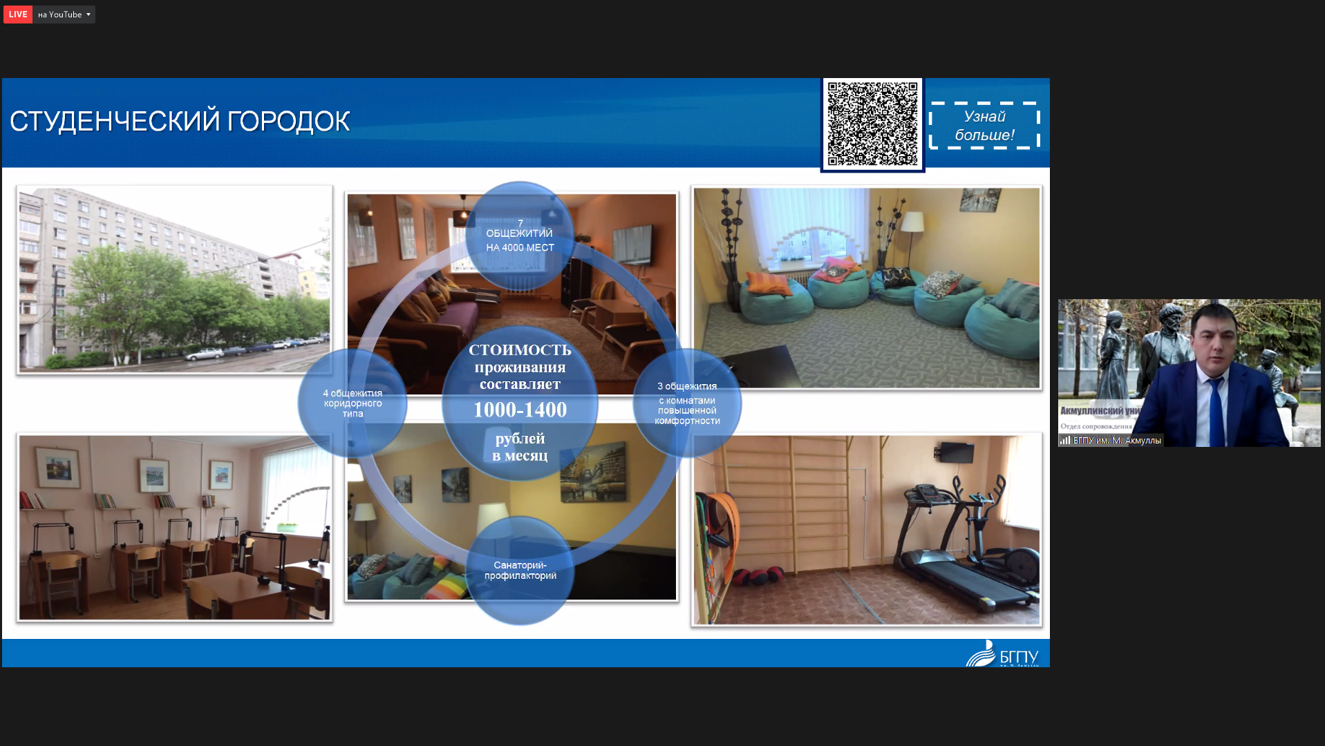 Акмуллинский университет был представлен и.о. начальника отдела сопровождения международных программ и проектов Радиком Юлбаевым. В рамках доклада были озвучены основные преимущества университета, приоритетные программы подготовки, инфраструктура и количество бюджетных мест и пр.