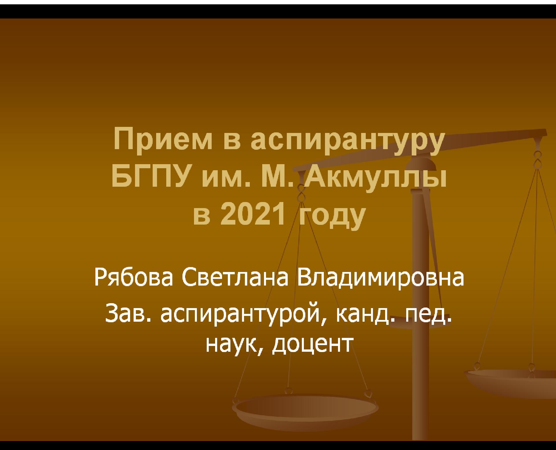 6 апреля  2021 года  начался цикл презентаций  научных школ и образовательных программ аспирантуры  для магистрантов БГПУ им. М. Акмуллы, организованных Управлением научной работы и отделом аспирантуры.