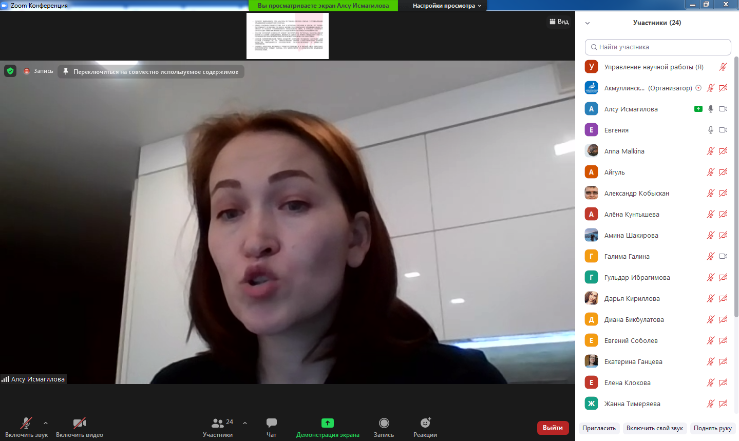 На семинаре «Электроника функциональных материалов и систем», организованном лабораторией «Наноэлектроника перспективных материалов», был представлен доклад Тухбатуллиной А.А., аспирантки Института нефтехимии и катализа УФИЦ РАН.