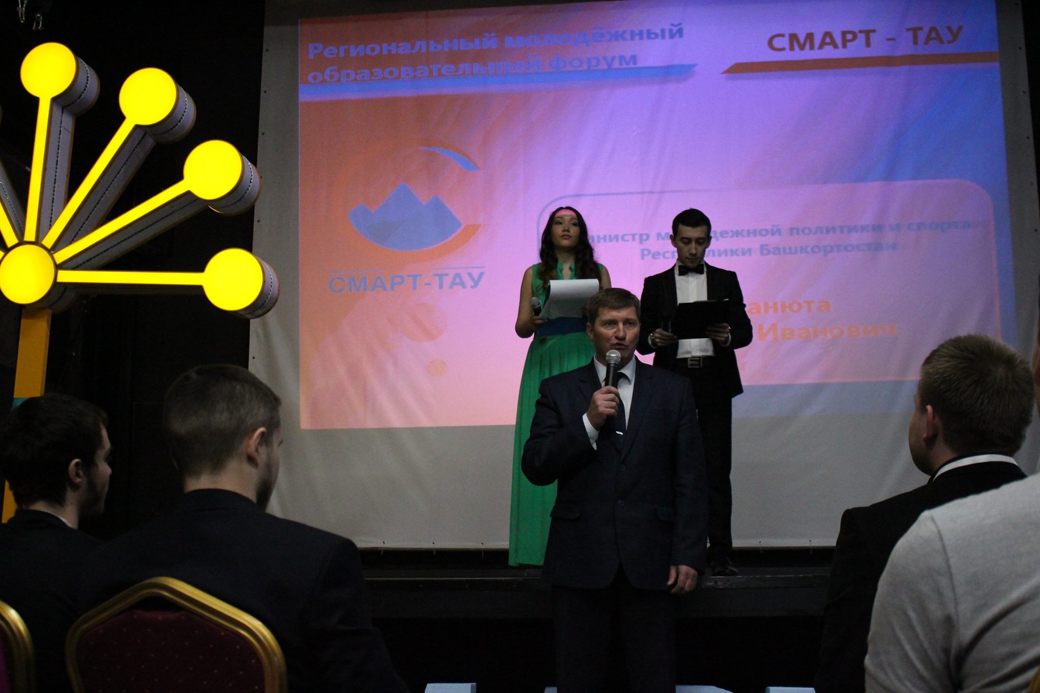 В гостинице «Амакс Турист-отель» состоялось открытие Республиканского молодежного образовательного форума «Смарт – тау», организованного Министерством молодежной политики и спорта Республики Башкортостан. В нем приняли участие: Первый заместитель председателя Комитета Совета Федерации по науке, образованию и культуре, представитель от исполнительного органа государственной власти Республики Башкортостан Лилия Гумерова, Заместитель Председателя Государственого Собрания - Курултая РБ, Депутат Государственного Собрания – Курултая Республики Башкортостан Юмабика Ильясова, министр молодежной политики и спорта Республики Башкортостан Андрей Иванюта, программный директор молодежного форума «Арктика. Сделано в России», Анна Аперян, специалисты-эксперты министерств и ведомств республики, учреждений молодежной политики, эксперты в области проектной деятельности, представители дирекции всероссийских молодежных образовательных форумов, общественных организаций.