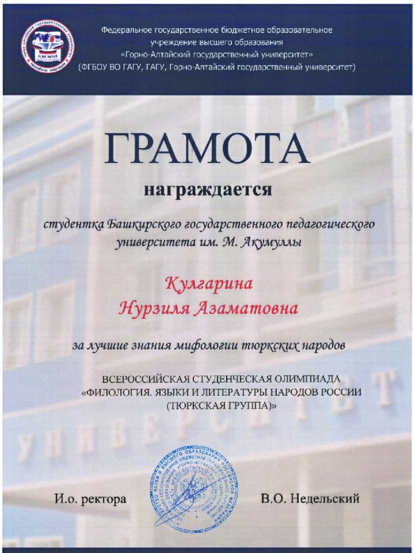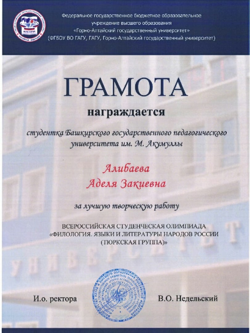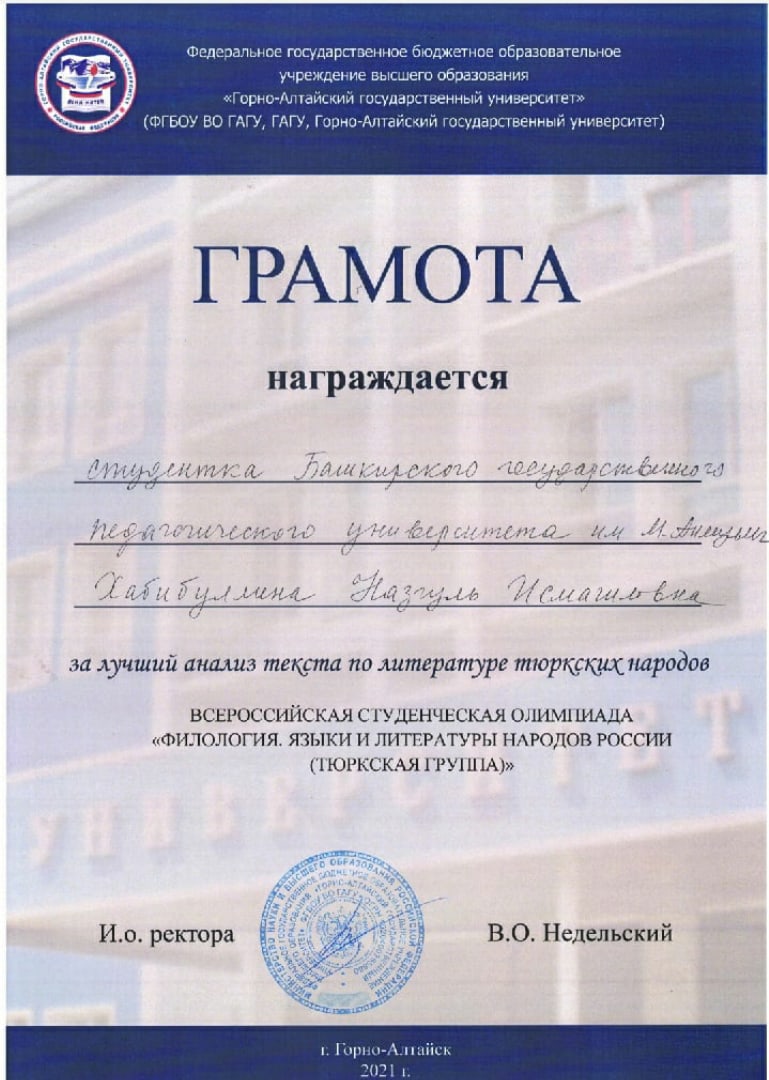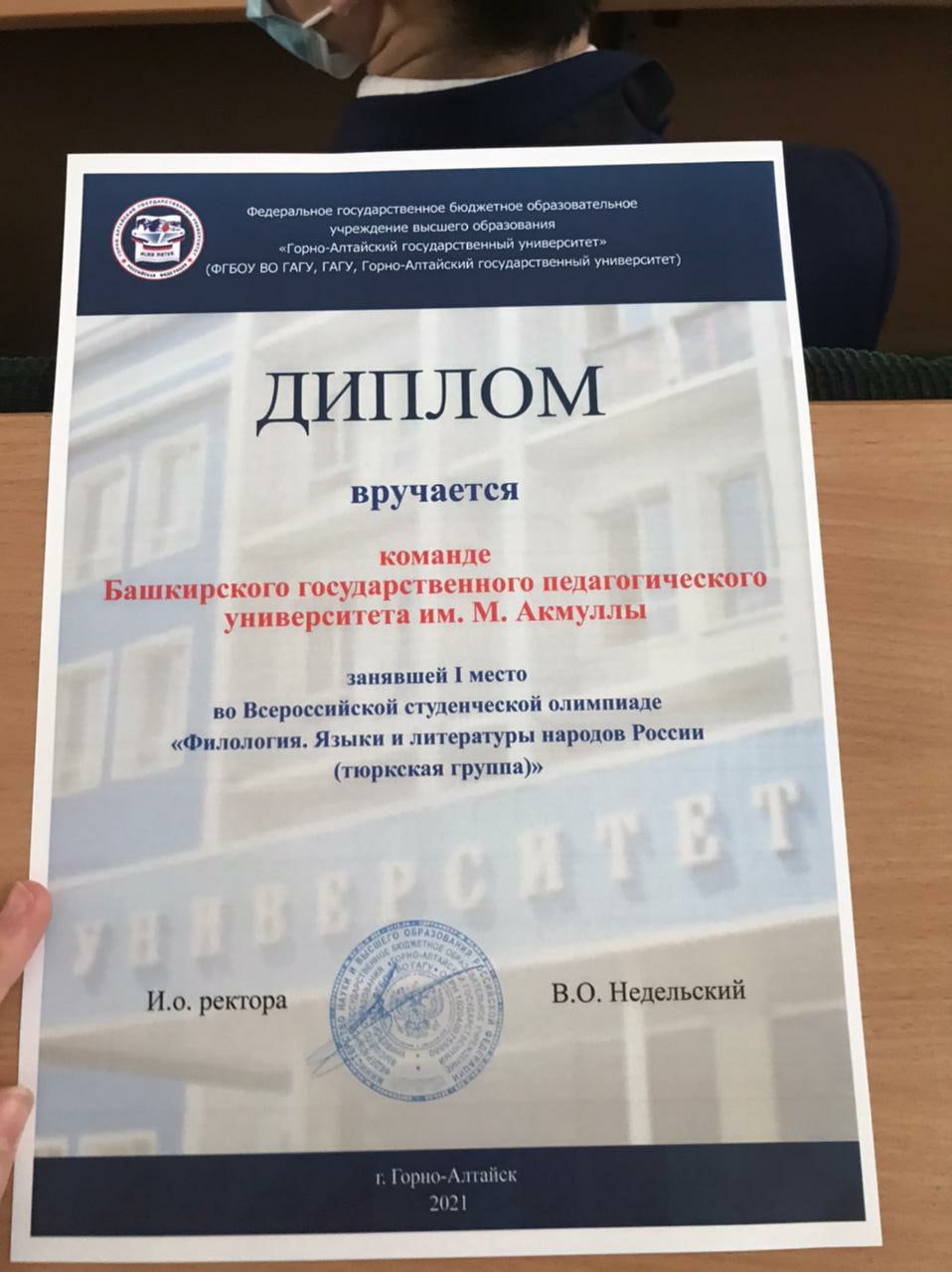 Студенты факультета башкирской филологии завоевали диплом 1 степени на Всероссийской студенческой олимпиаде по языку и литературе тюркских народов РФ