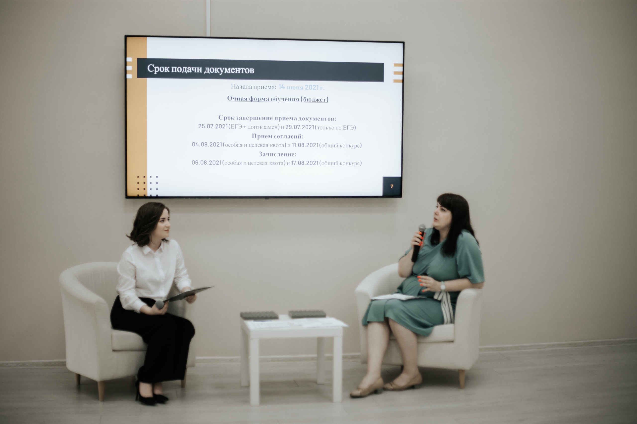 Начальник Управления рекрутинга и карьерного развития Наталья Илюшина представила основные аспекту поступления в этом году и нюансы подачи документов.