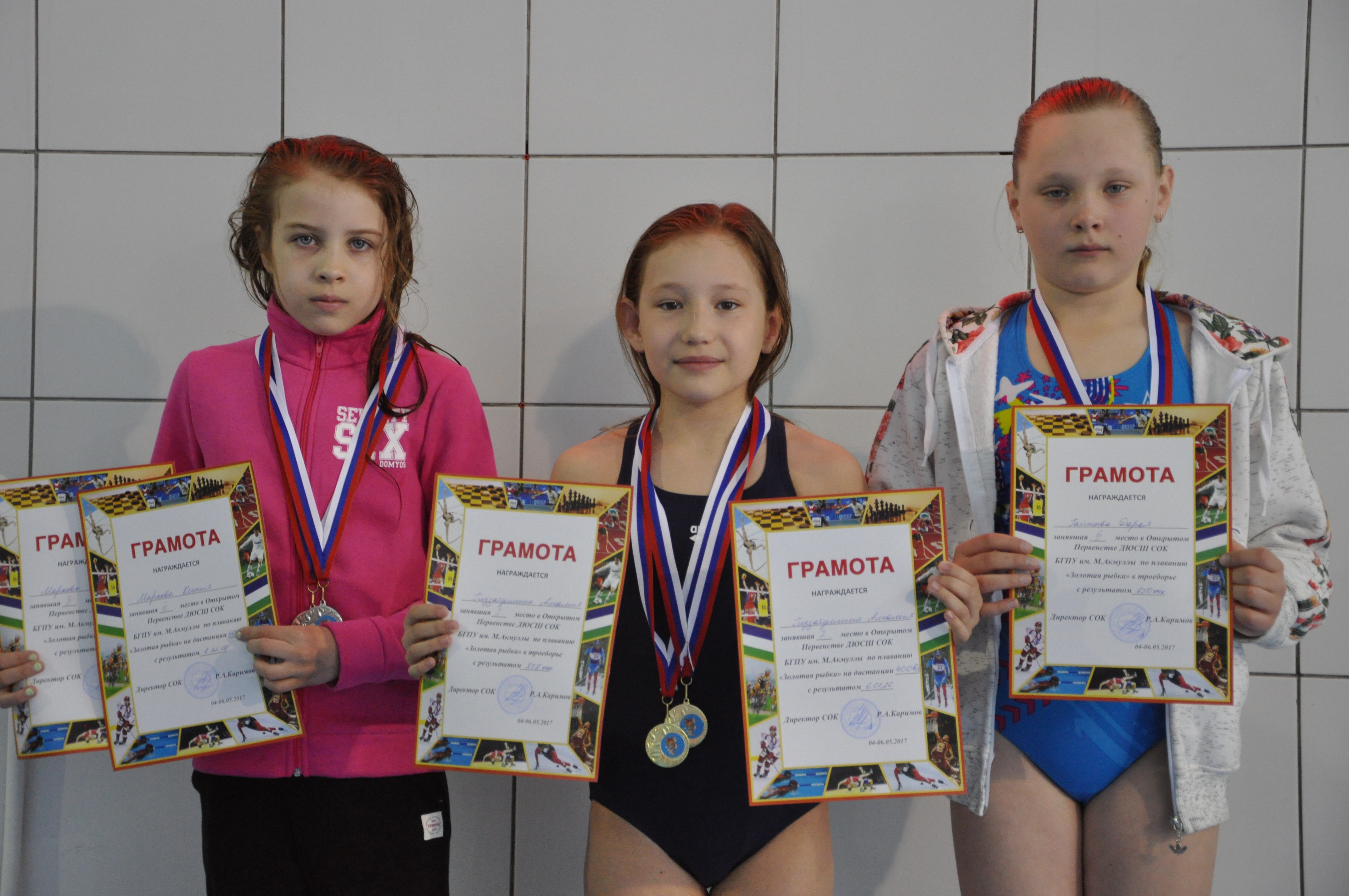 6 мая в спортивно-оздоровительном комплексе университета завершился трехдневный водный марафон - Золотая рыбка - 2017. Более 150 учащихся ДЮСШ по плаванию г. Уфы и Нефтекамска выявляли сильнейших, чтобы определиться с составом участников на предстоящие республиканские соревнования, которые пройдут в конце мая в нашем спорткомплексе. Порадовали своим выступлением в жесткой конкуренции воспитанники ДЮСШ СОК университета завоевав 9 медалей разного достоинства. Вот они наши "Золотые рыбки БГПУ":