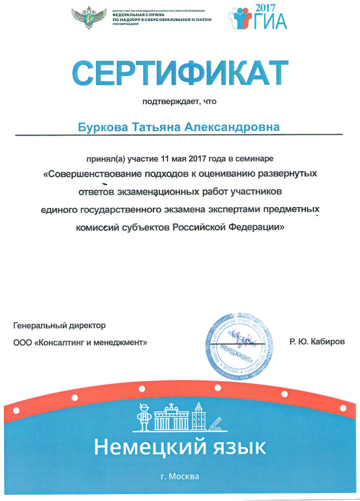11 мая 2017 года в г. Москва прошел семинар «Совершенствование подходов к оцениванию развернутых ответов экзаменационных работ участников единого государственного экзамена экспертами предметных комиссий субъектов Российской Федерации».