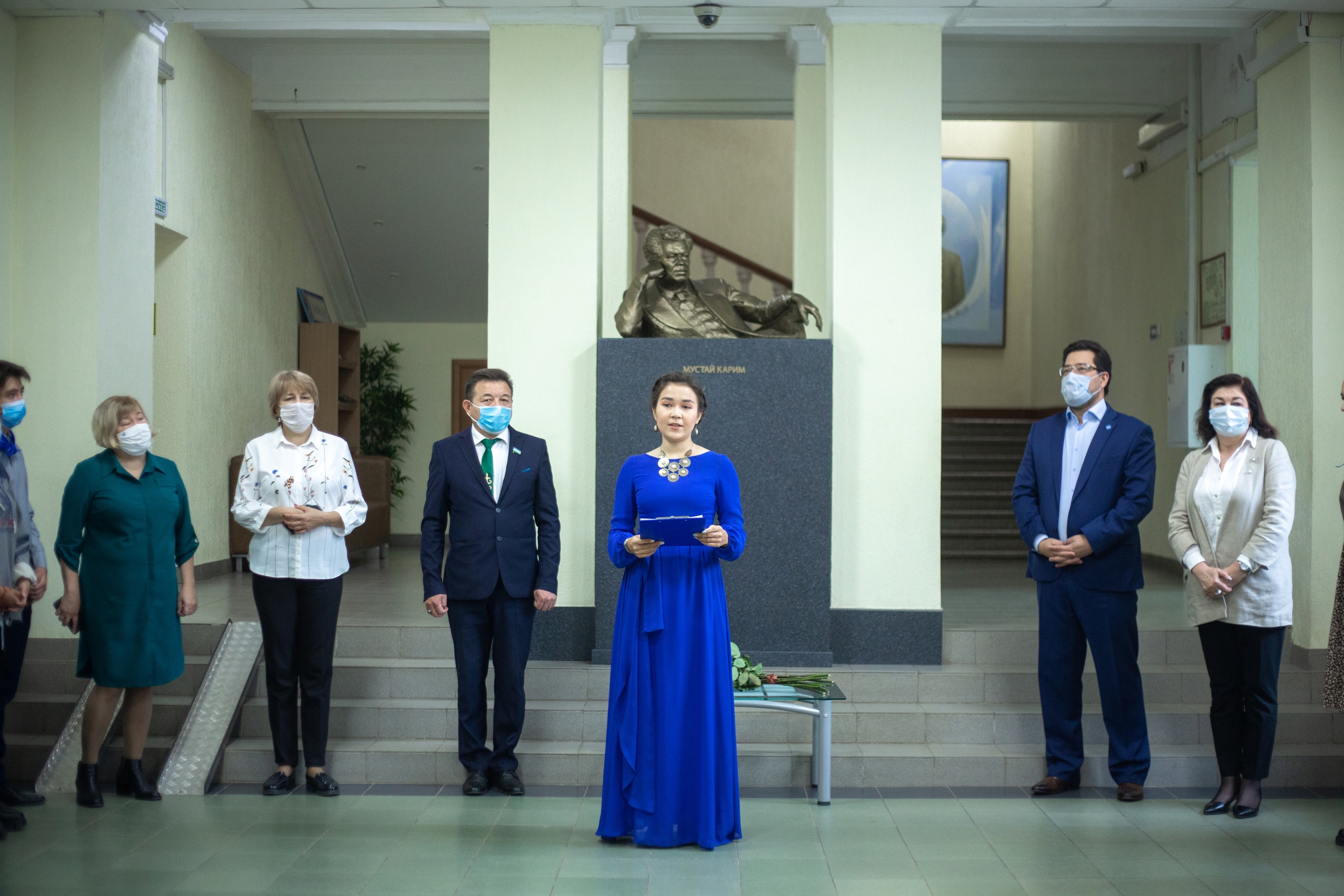 В 3 корпусе университета собрались студенты и преподаватели БГПУ им. М.Акмуллы, чтобы почтить память великого поэта и прочитать его стихи. Ректор вуза С.Т. Сагитов возложил цветы к бюсту М. Карима, открытому в 2019 году к столетию писателя. В том же году на факультете была открыта именная аудитория Почетного профессора  БГПУ им.Акмуллы М.Карима.