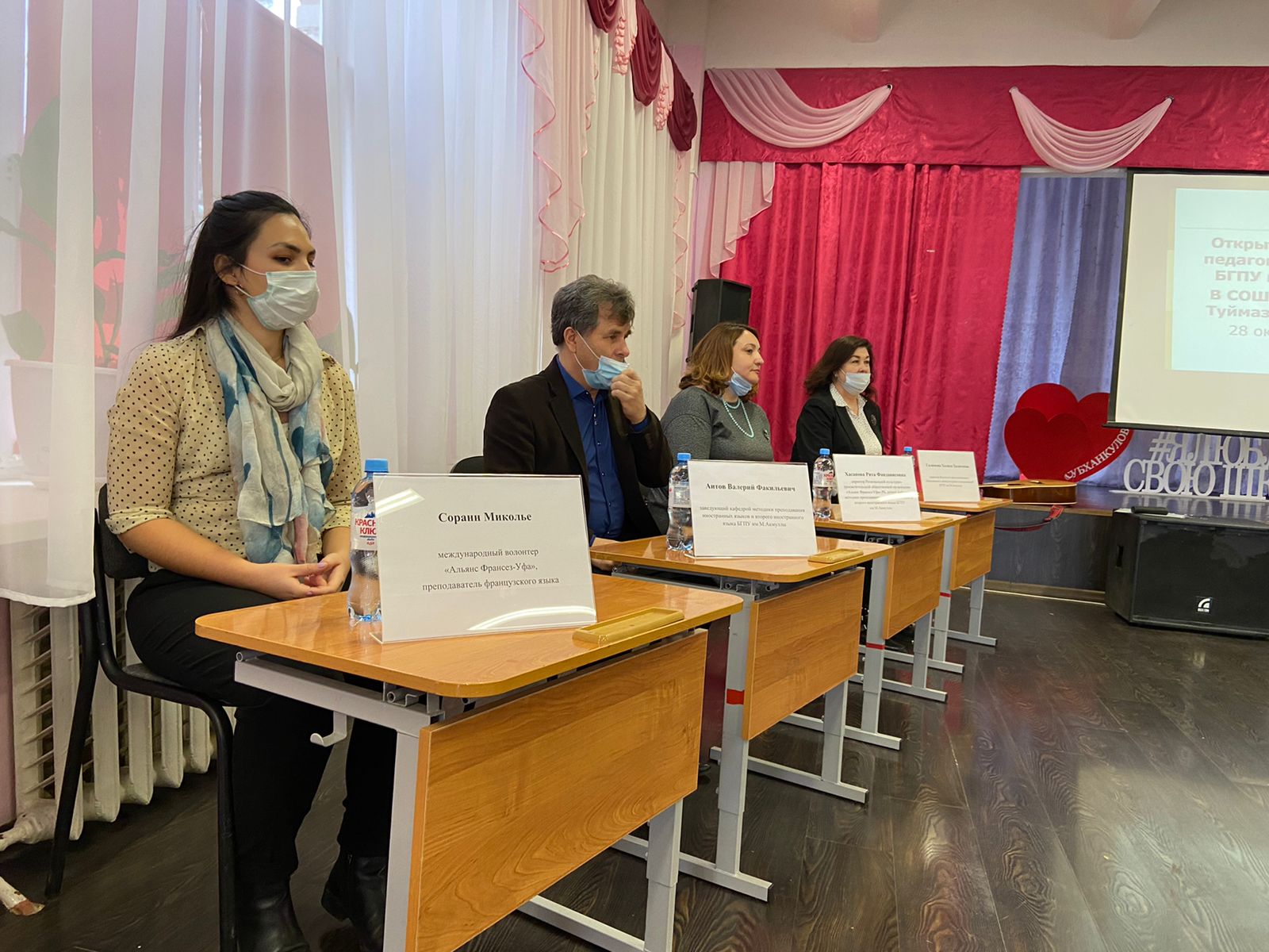 После официальной части студенты Акмуллинского университета поделились с учениками впечатлениями о студенческой жизни, затем организовали интерактивную викторину для старшеклассников. В.Ф. Аитов и Р.Ф. Хасанова провели мастер-классы для педагогов Туймазинского района. Гостья из Франции Соранн Миколье при участии студентки пятого курса Карины Богдановой провела занятие с учениками 5 класса.