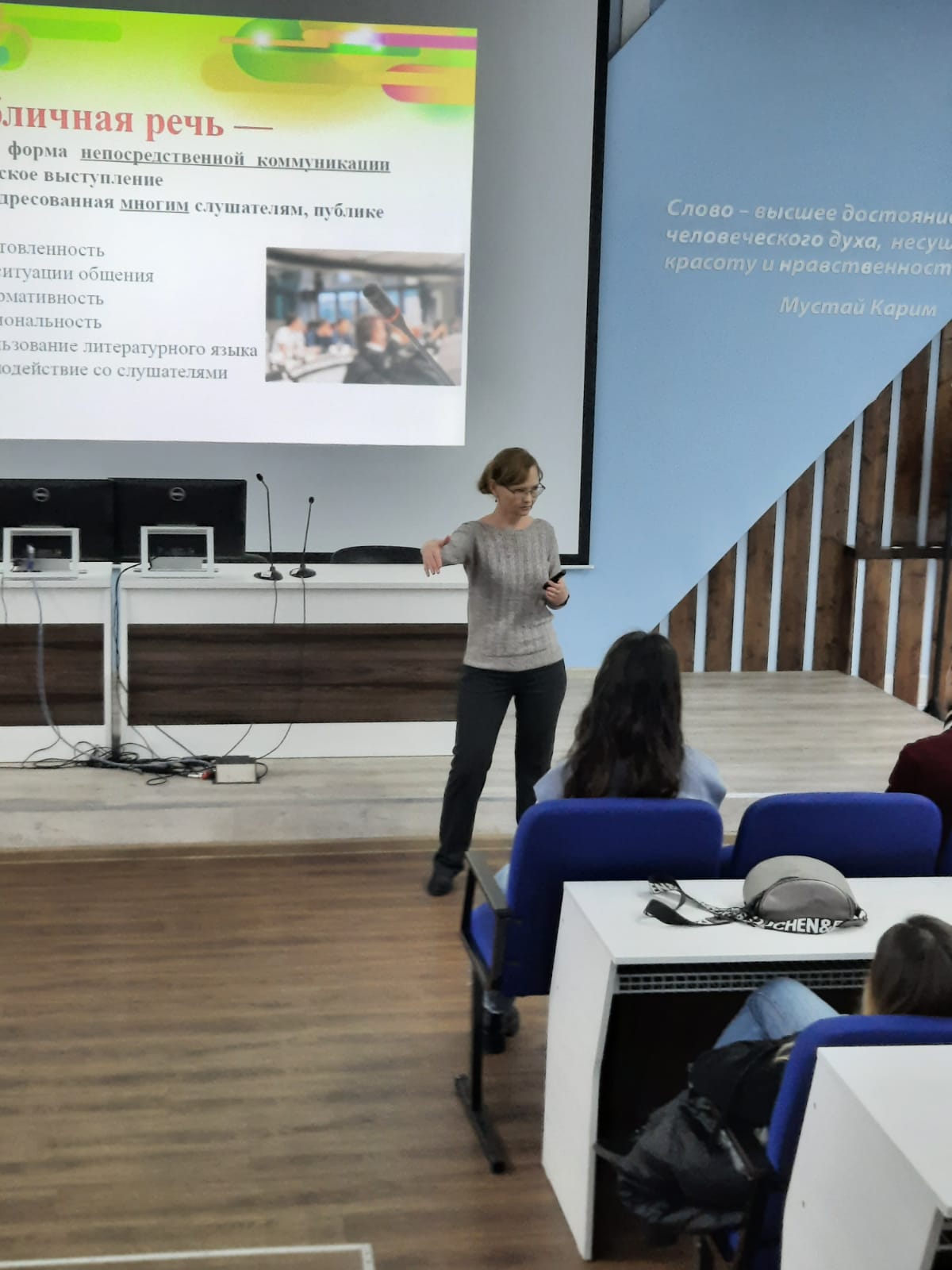 10 ноября 2021 года продолжилось обучение студентов навыкам грамотной коммуникации в рамках проекта «Речевая безопасность вуза: воспитательные и правовые аспекты»: состоялся очередной образовательный тренинг «Публичная речь: продвинутый уровень». Первокурсники 9 факультетов и институтов БГПУ им. М. Акмуллы изучили особенности публичного выступления в условиях массовой межкультурной коммуникации, освоили вербальные и невербальные приемы конструктивного взаимодействия с разными типами аудитории, а также правила создания текстов, отвечающих требованиям речевой безопасности.
