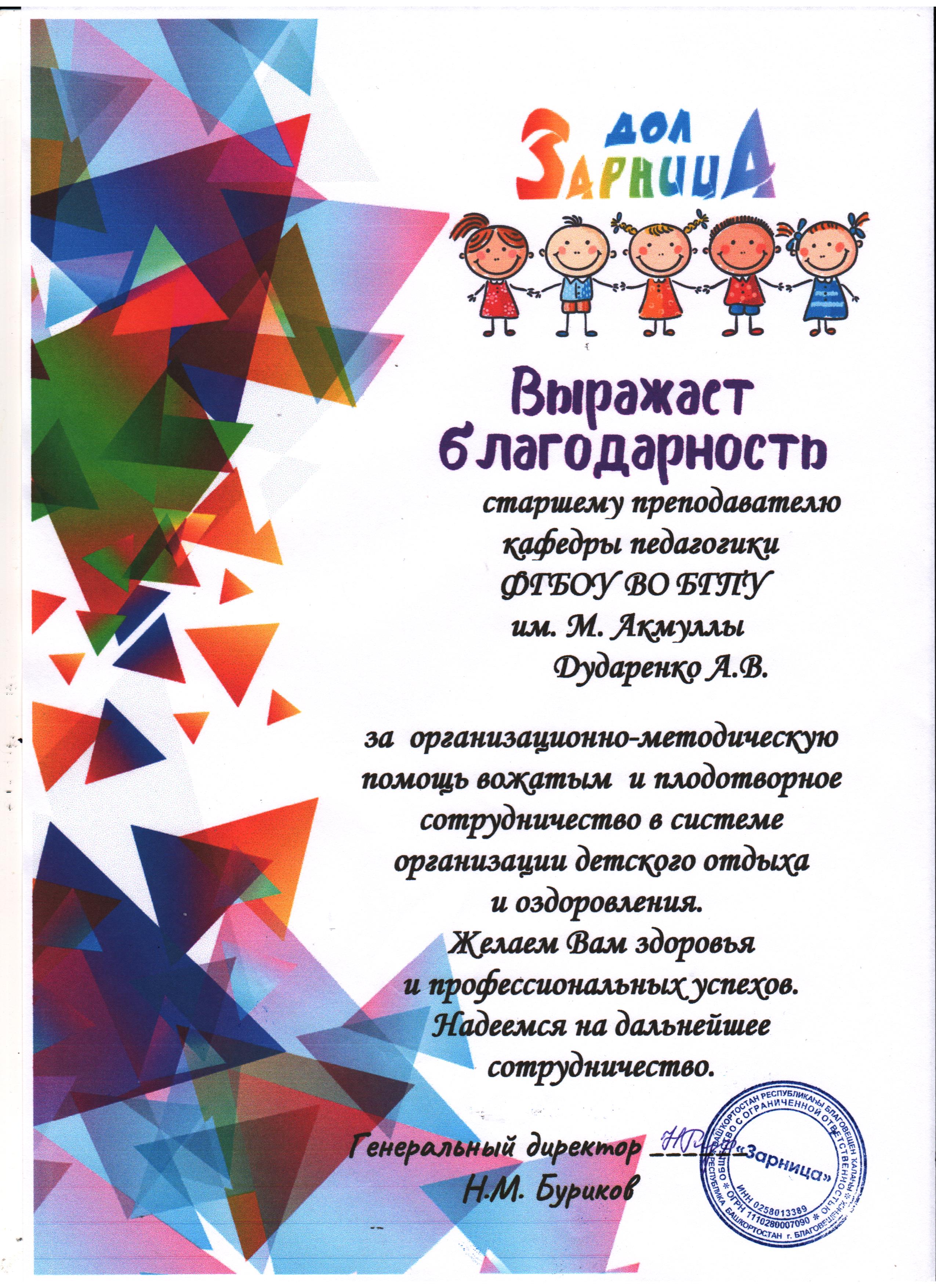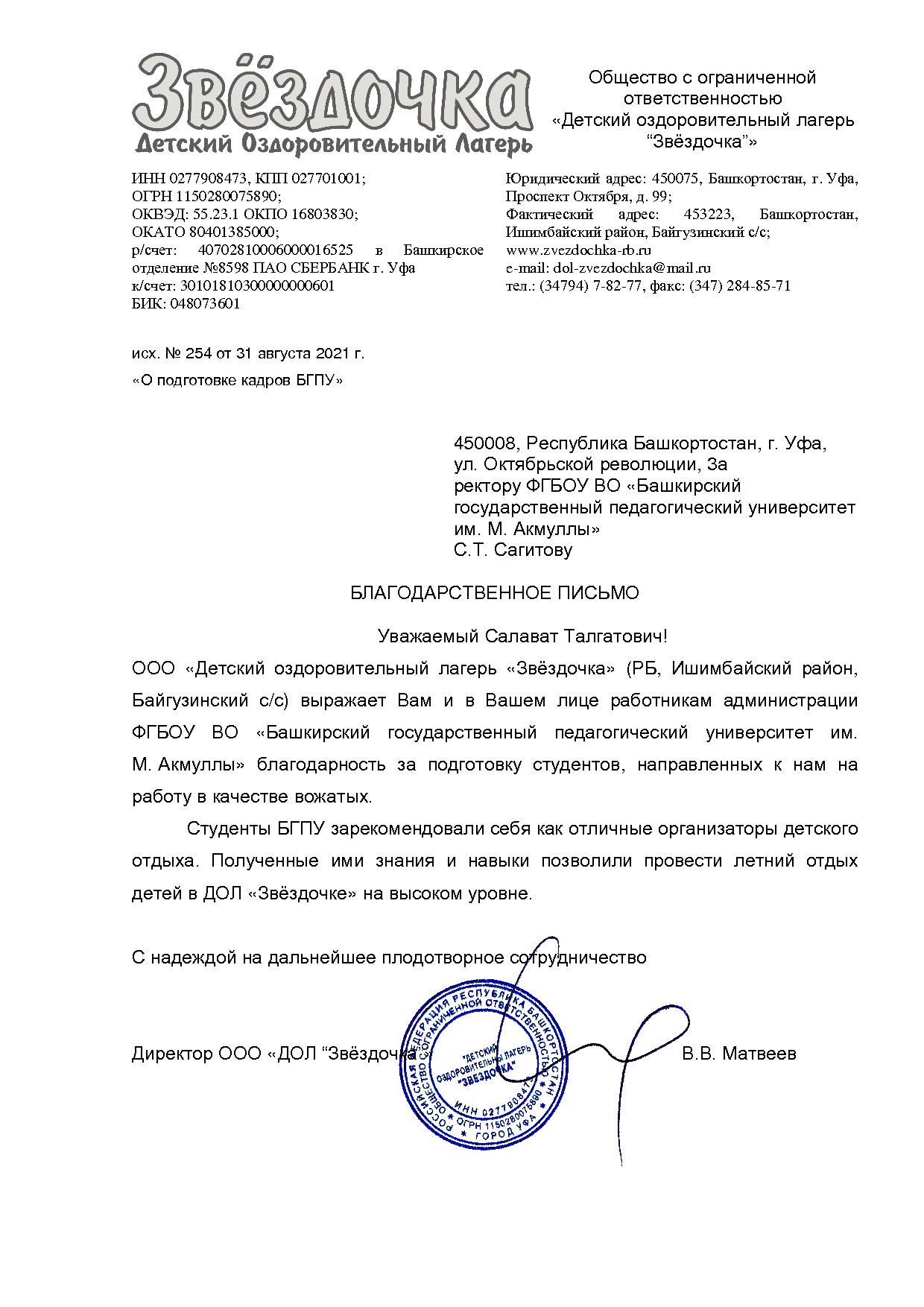 Акмуллинский университет получает благодарности за работу студентов-вожатых