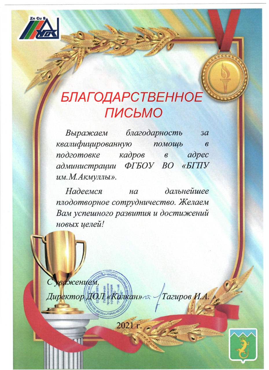 Важно отметить, что высокое качество подготовки молодых специалистов в БГПУ им.М.Акмуллы отмечают и Всероссийский детский центр "Орлёнок", и Управление делами Президента Российской Федерации.