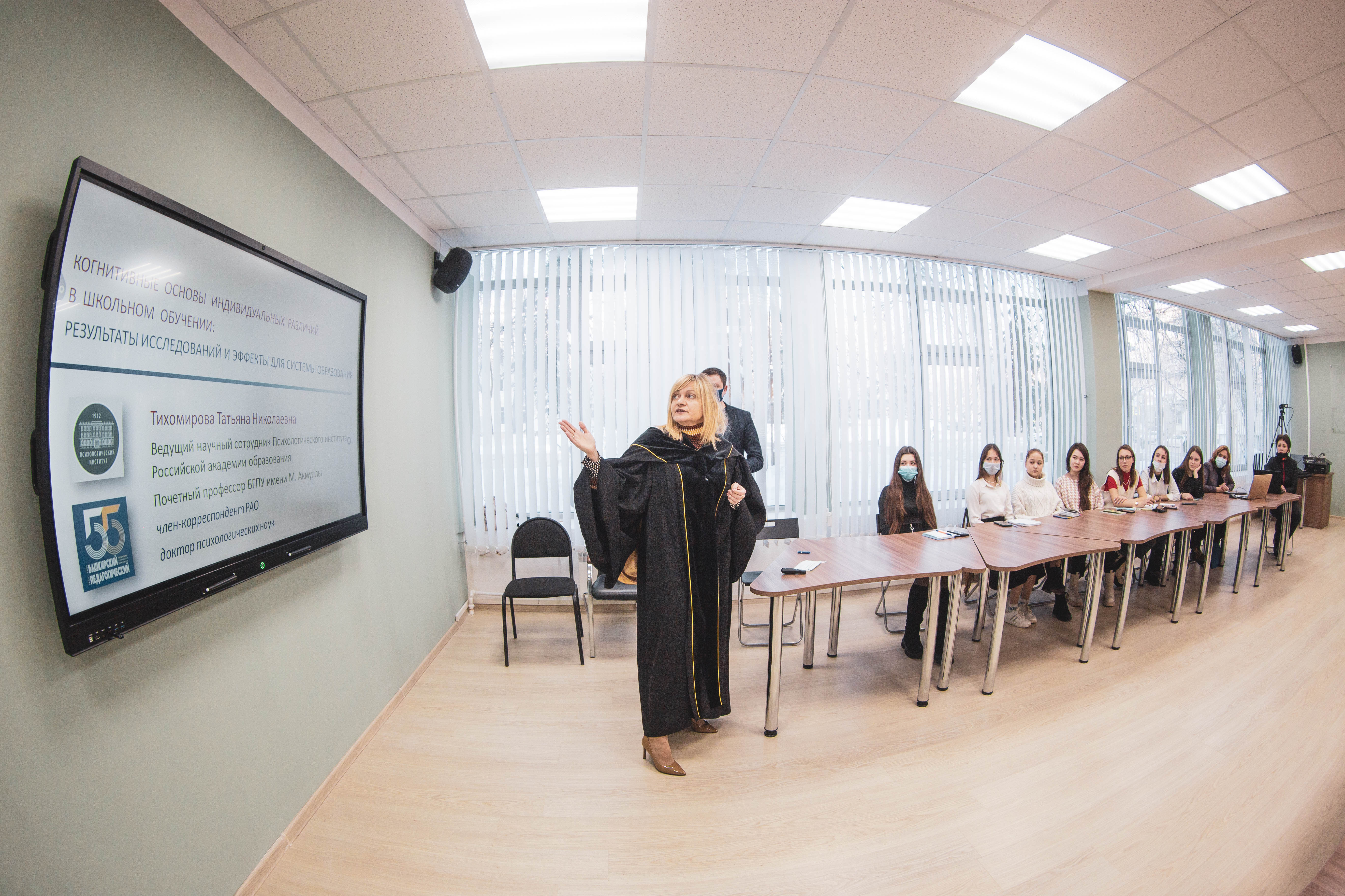 На встрече со студентами факультета психологии и Института педагогики Татьяна Николаевна рассказала о своих исследованиях. Студенты Акмуллинского университета проявили большую заинтересованность в этих работах, активно задавали вопросы. Из-за санитарно-эпидемиологических ограничений количество участников очной встречи было ограничено, но для желающих была организована прямая трансляция на ютуб-канале университета.