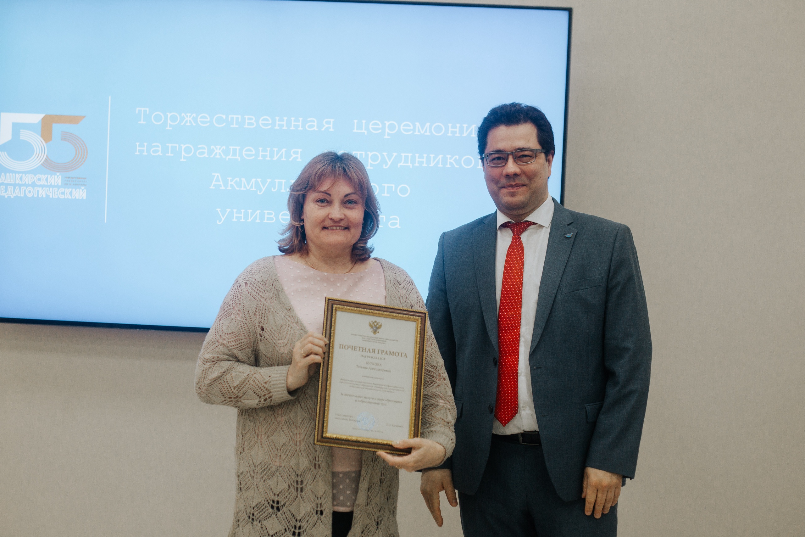 29 марта 2022 года в БГПУ им. М. Акмуллы состоялась торжественная церемония чествования сотрудников вуза. Лучшие из лучших получили государственные и ведомственные награды Российской Федерации и Республики Башкортостан. Награждение приурочено к празднованию 55-летия со дня основания университета.