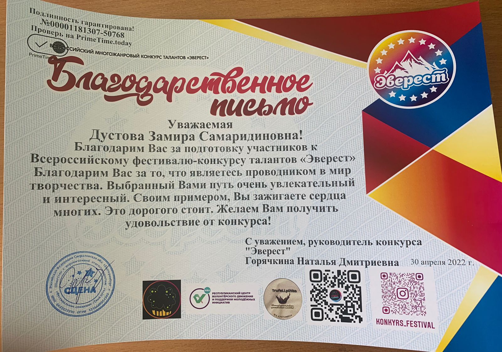 30 апреля 2022 года во Дворце молодежи прошел Всероссийский многожанровый конкурс талантов «Эверест».