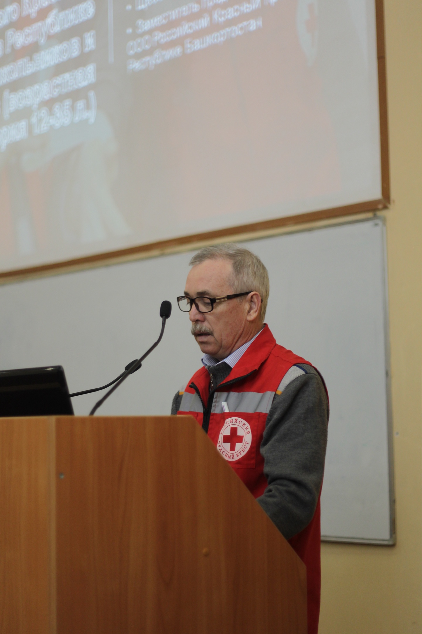 Далее председатель Башкортостанского регионального отделения Российского Красного Креста Юрий Симонов рассказал о деятельности общероссийской общественной организации «Российский Красный Крест». После официальной части работа конференции продолжилась в трёх секций: «Академия So.Sпас», «Стоп.Угроза» и «Методическое обеспечение работы преподавателя организатора ОБЖ».