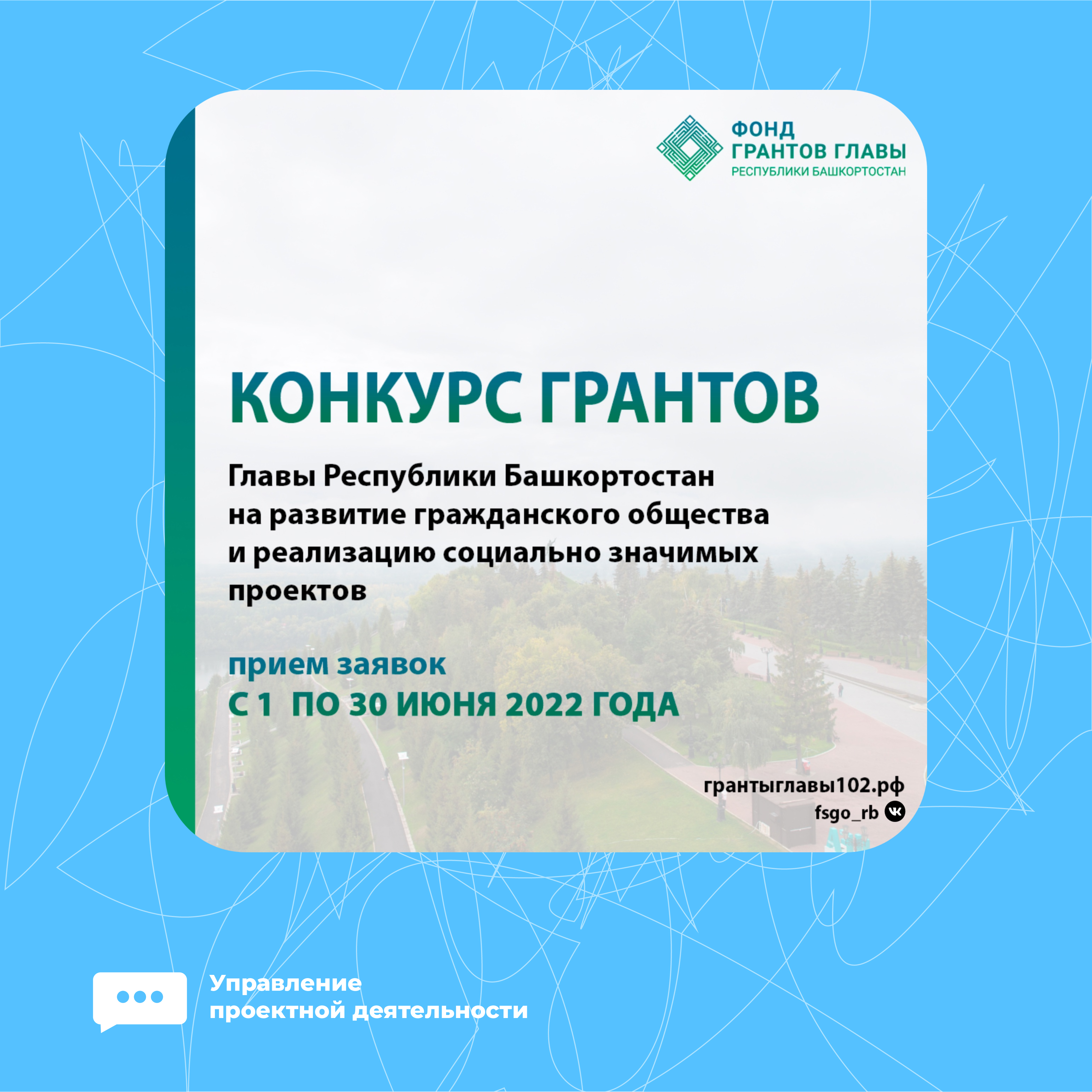 Заявки на участие в конкурсе будут приниматься с 1 по 30 июня 2022 года до 17.00 ч. по местному времени на сайте грантыглавы102.рф