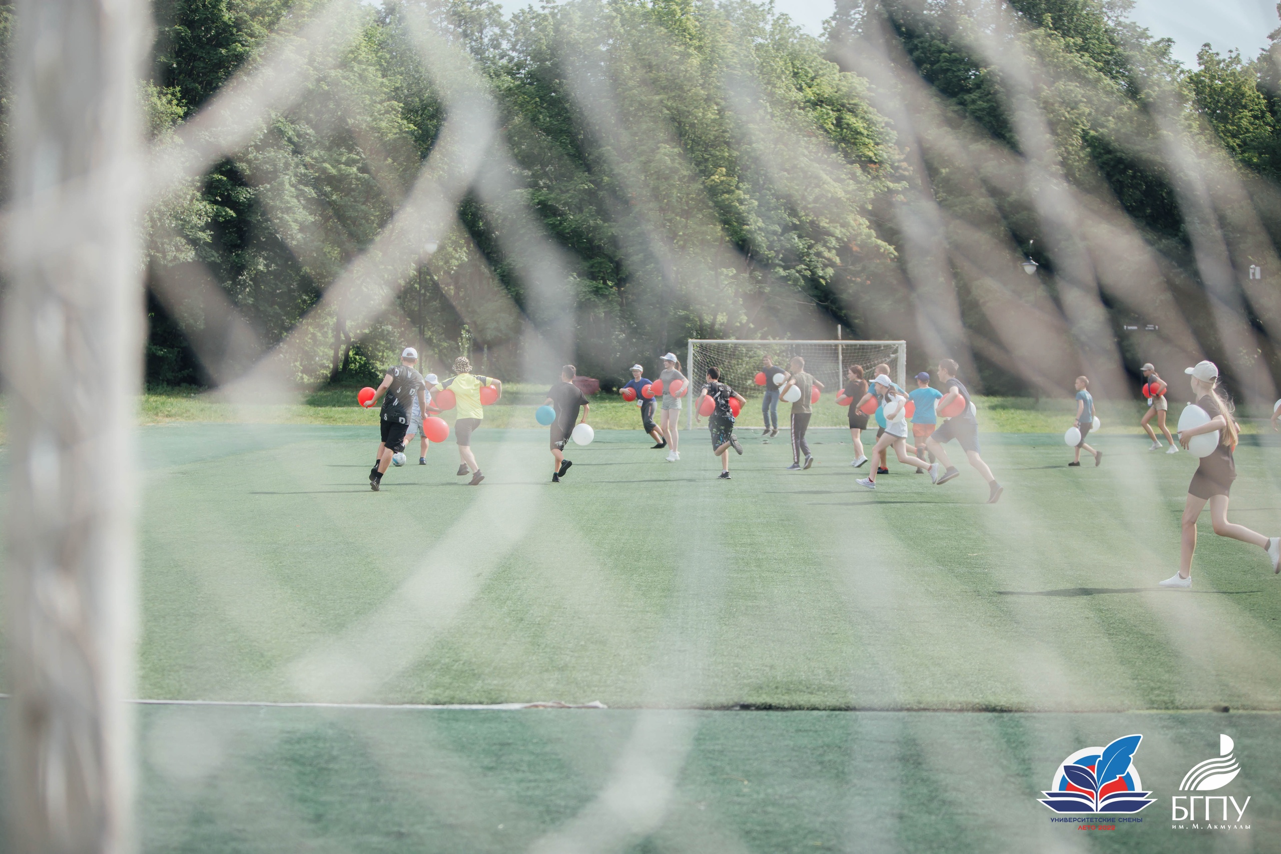 Далее школьники переместились в парк имени Лесоводов Башкирии, где они сыграли в шуточный футбол с воздушными шарами. Игра проходила по всем правилам привычного всем футбола, но с небольшим дополнением. В руках игроки держали воздушные шары, накачанные обычным воздухом. Юные футболисты должны были не просто забить мяч в ворота соперника, но также не дать воздушным шарикам коснуться земли. Это был матч, в котором игра была важнее результата.  Также ребята смогли поиграть в бадминтон, волейбол и другие подвижные игры. Организаторы университетской смены отмечают, что несмотря на усталость, дети были счастливы.