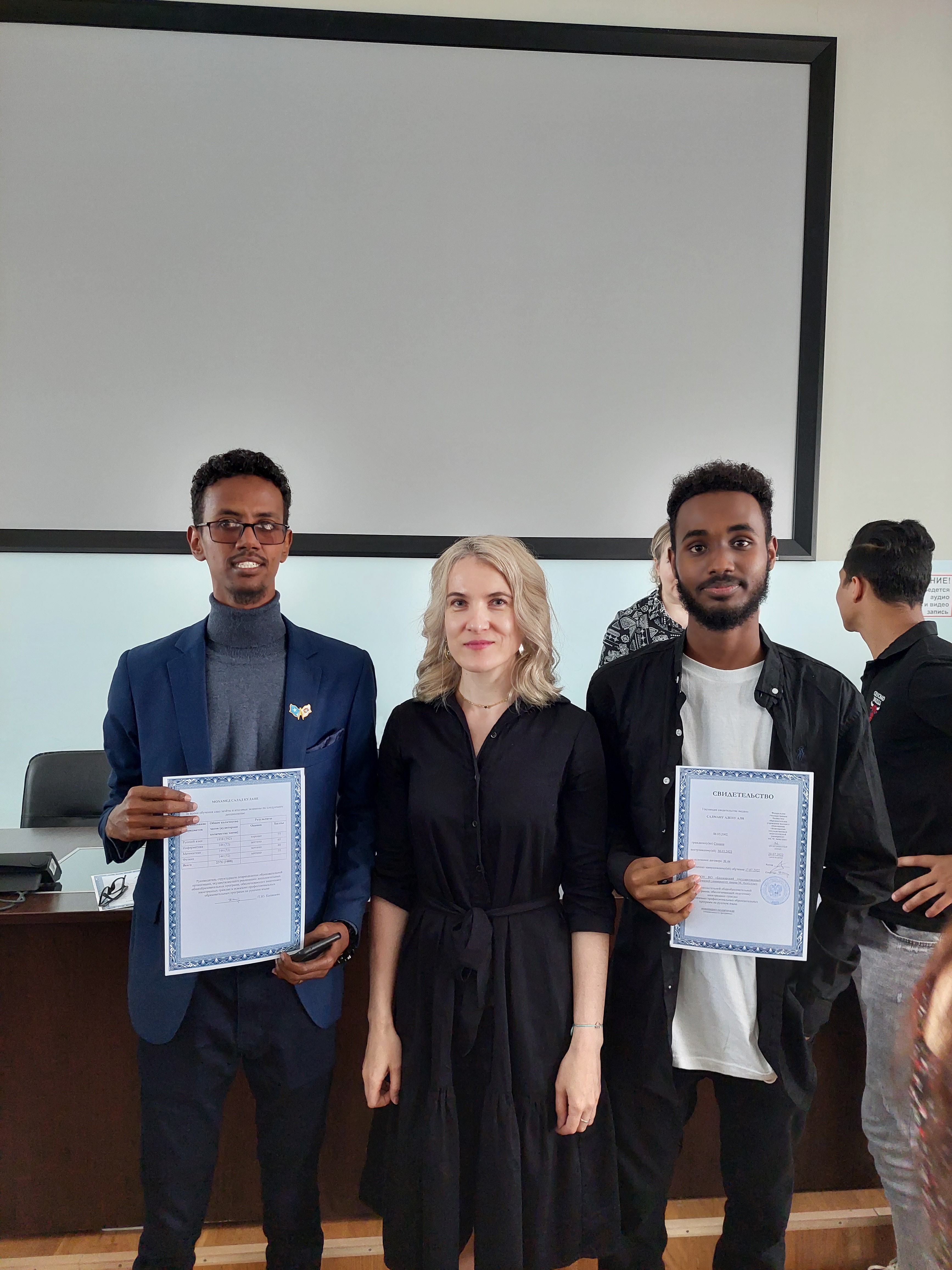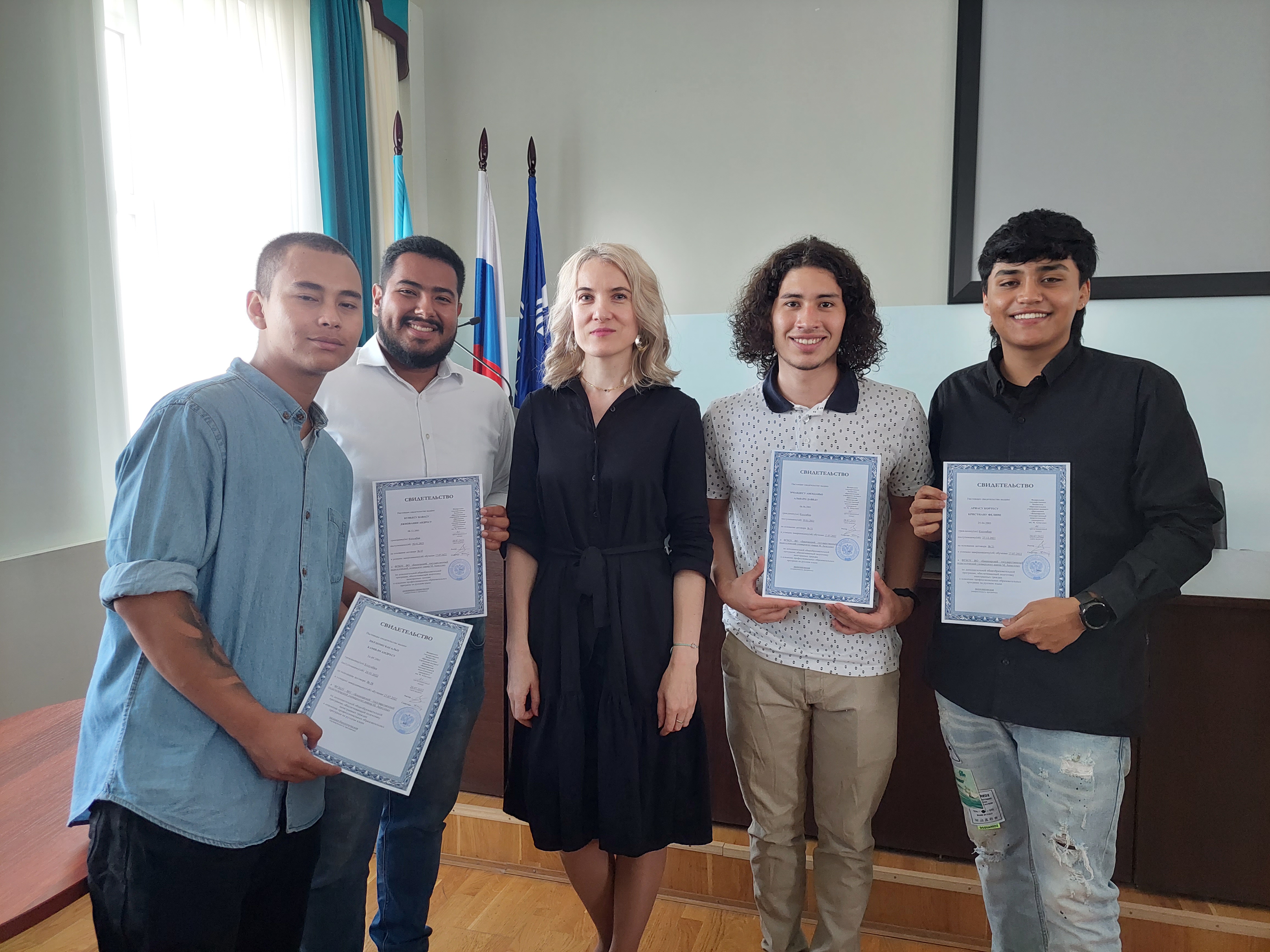 20 июля слушателям из Египта, Ирана, Китая, Колумбии и Сомали, успешно завершившим дополнительную общеобразовательную программу, были выданы свидетельства о завершении обучения. Поздравили иностранцев с окончанием обучения и пожелали им дальнейших успехов начальник управления международных связей Радик Юлбаев, руководитель дополнительной общеобразовательной программы «Подготовка иностранных граждан и лиц без гражданства к освоению профессиональных образовательных программ на русском языке» Гульнара Кудинова, руководитель подготовительного отделения для иностранных граждан Татьяна Капишева, преподаватели Гузель Курбангалеева и Екатерина Попова.