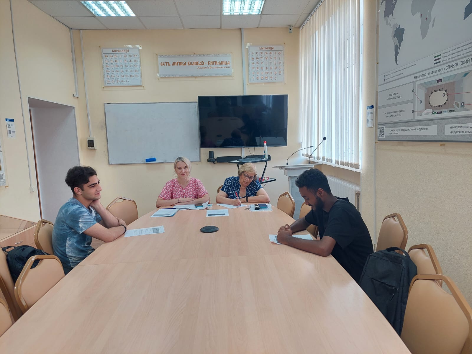 Совсем недавно состоялась итоговая аттестация слушателей подготовительного отделения для иностранных граждан. Юноши и девушки, обучавшиеся на гуманитарном, инженерно-техническом, естественнонаучном, медико-биологическом и экономическом профилях, успешно сдали зачёты по литературе, истории, обществознанию, физике, математике, информатике, химии и биологии. Экзамен по русскому языку продолжался 2 дня, иностранцы выполняли тесты по лексике и грамматике, чтению, аудированию, писали письмо на русском языке, составляли диалоги в парах на различные ситуации, рассказывали о себе, своей семье и хобби.