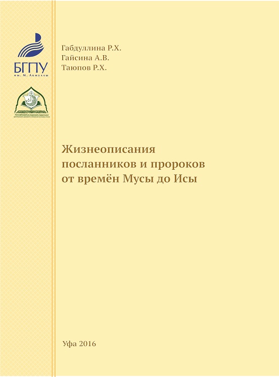 В рамках реализации плана мероприятий по обеспечению подготовки специалистов с углубленным знанием истории и культуры ислама в БГПУ им. М. Акмуллы подготовлено и выпущено учебное пособие «Жизнеописания посланников и пророков от времен Мусы до Исы». Данное пособие было подготовлено авторским коллективом преподавателей РИУ ЦДУМ России: Р.Х. Габдуллина, А.В. Гайсина, Р.Х. Таюпов. Целью данного издания является раскрытие основных вех жизни и деятельности Пророков ислама. Кратко, в доступной форме предполагается осветить основные положения заявленной темы, опираясь на достижения богословия и исторической науки. Рекомендовано Ученым советом РИУ ЦДУМ России в качестве учебного пособия для преподавателей Российского исламского университета и других вузов, а также для преподавателей зарубежных образовательных структур Федерации университетов исламского мира, преподавателей духовных образовательных учреждений, исламоведов, востоковедов, богословов России.