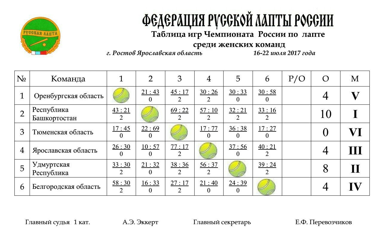 Итоги чемпионата России по лапте 2017 года: