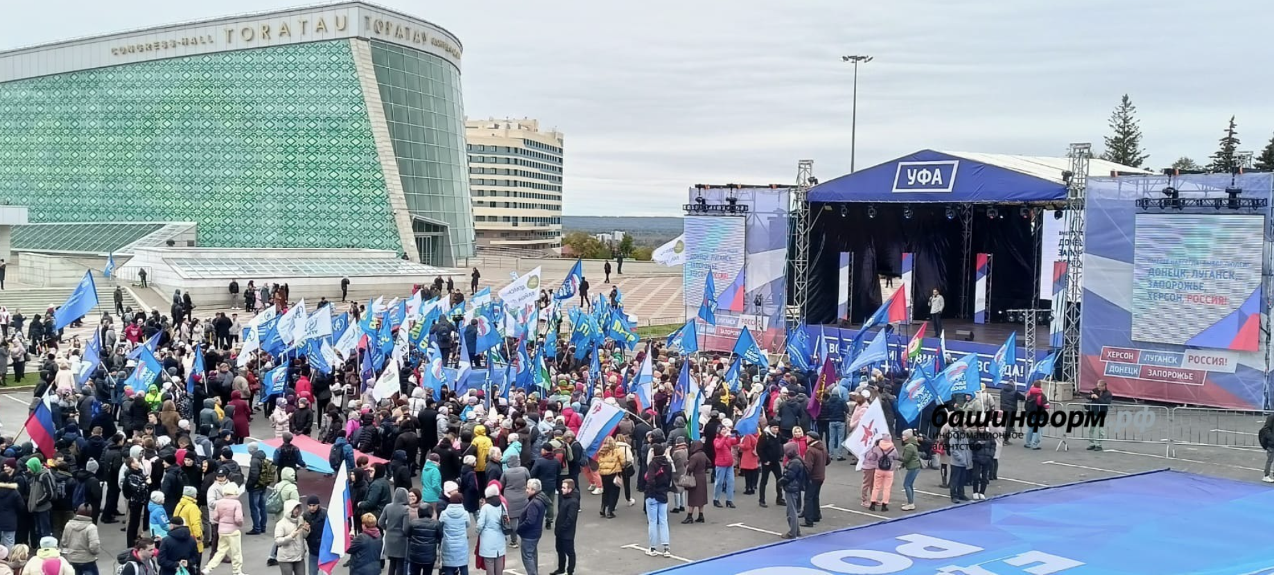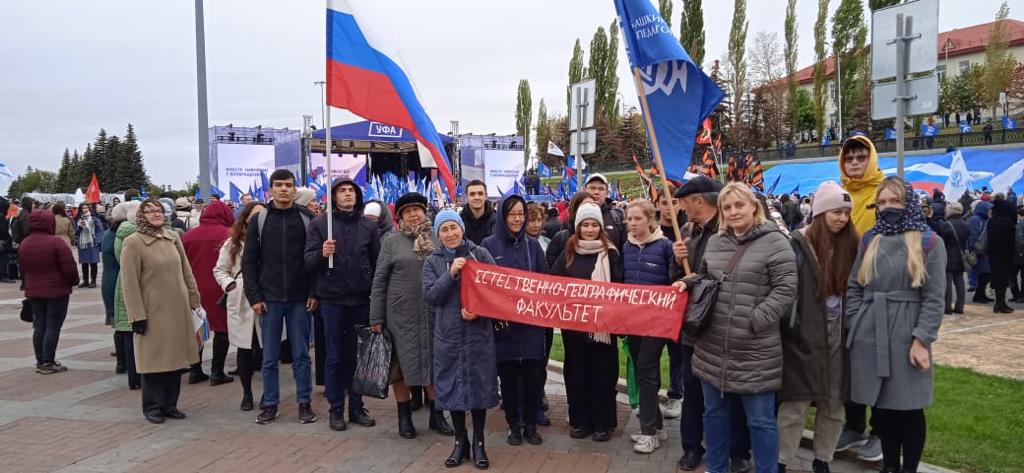 30 сентября на площади перед конгресс-холлом «Торатау» в Уфе прошел митинг-концерт в честь завершения референдума, на котором решался вопрос о вхождения ДНР, ЛНР и Запорожья в состав Российской Федерации. В нем приняли участие более 20 тысяч уфимцев. Вместе с ними историческое событие в жизни страны приветствовали студенты, преподаватели и сотрудники Акмуллинского университета.